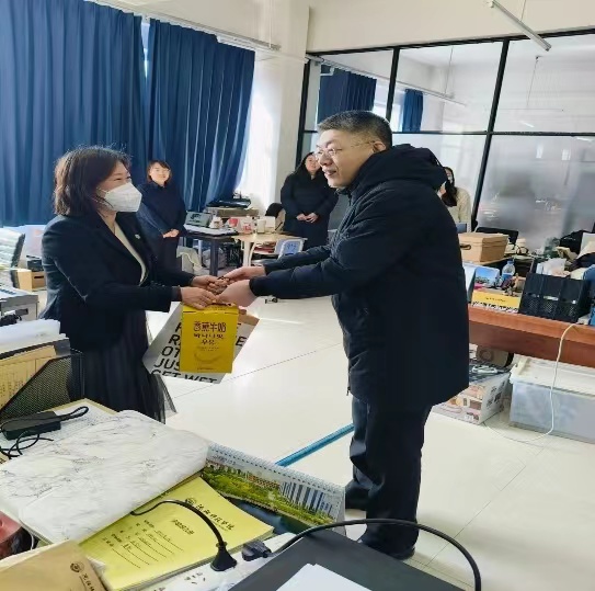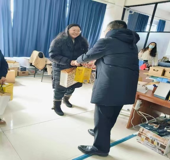 校领导逐一走访了环境与生物工程系实验室、会议室及各教研室,深入了解教研室建设、开放性试验展开、评估材料准备等工作开展情况以及系部文化墙建设情况,校领导每到一处,都认真听取相关部门负责人的工作汇报,与每位教师亲切交谈,对教师们严谨细致的工作态度、井然有序的工作精神、踏实认真的工作作风给予了充分肯定和赞扬,强调要以更加饱满的工作状态和昂扬的精神面貌投入到评建工作中,提前谋划、扎实起步,主动作为、抓好落实,为学校发展添砖加瓦。耿书记感谢系部全体同志的辛勤付出和努力,为每位同志打气,并亲自为每位同志送去慰问品。