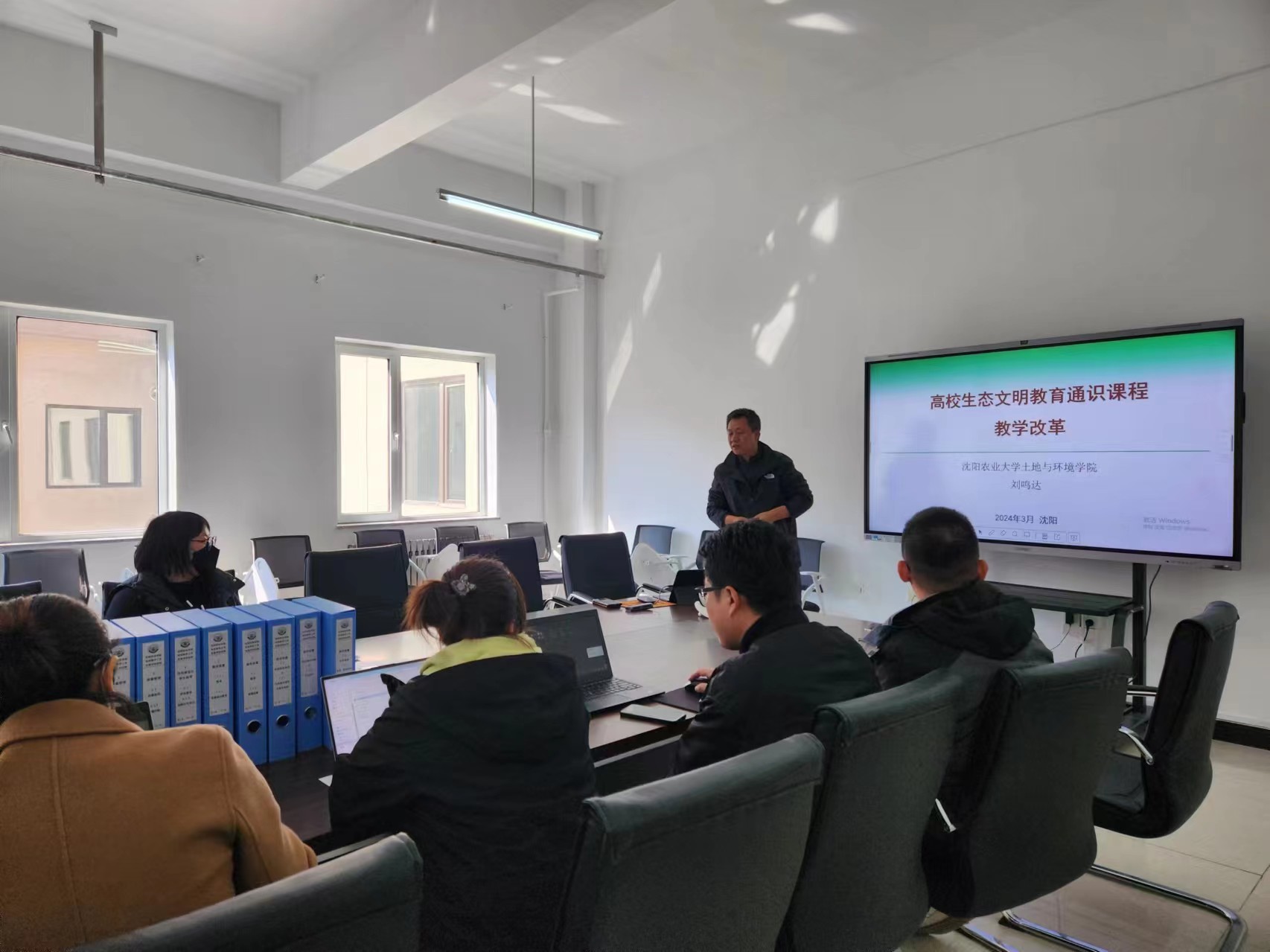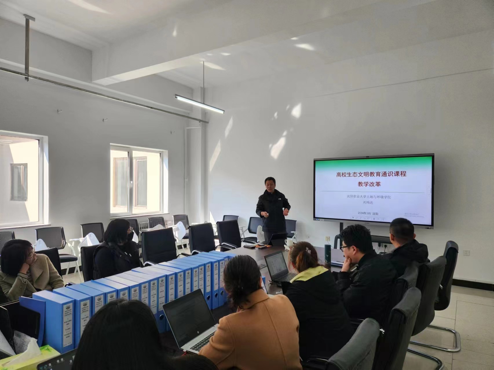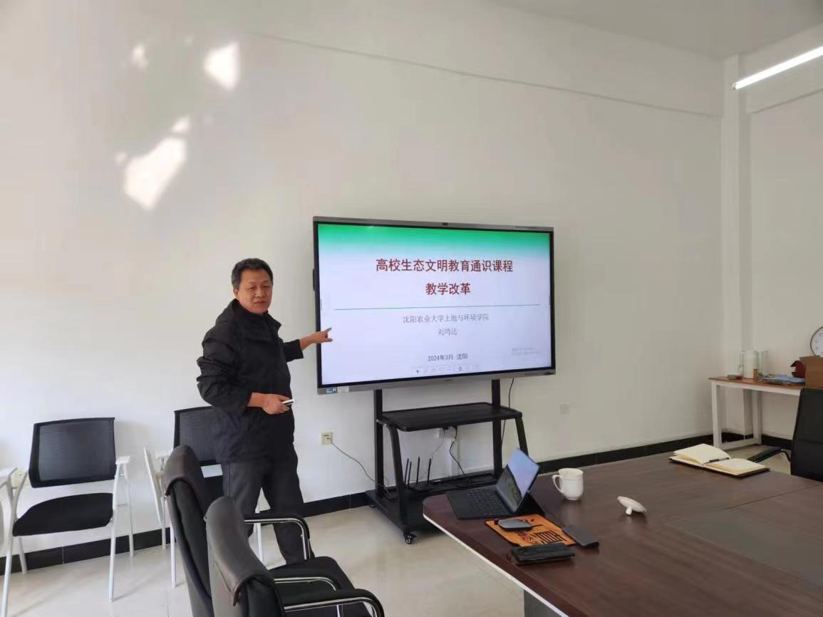为进一步深入贯彻科教兴国战略,加强高质量教育体系建设,落实立德树人根本任务,加快推进教育现代化,2024年3月21日,环境与生物工程系在实验中心B509举办了本学习教师培训的第三期,题目为《高校生态文明通识教育课程教学改革》,主讲人为沈阳农业大学教授,博士研究生导师刘鸣达,培训班由环生系主任刘慧主持,全体教师参加培训。