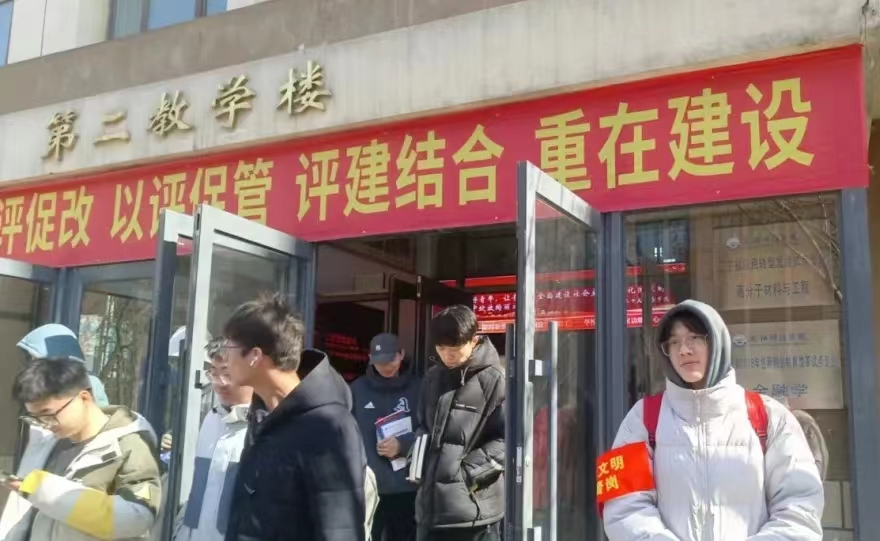 教学楼门口,一位位学生会成员在门口热情地向每一位老师和同学打招呼。他们戴着学生会的袖章,面带微笑,精神饱满。成为校园里一道亮丽的风景线。他们不仅代表着学生会,更代表着环生系的荣誉和责任。他们在这里是为了监督同学们遵守校规,维护校园秩序。