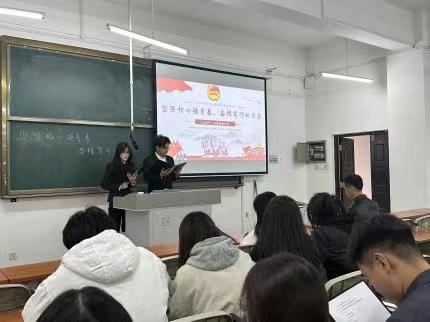 习近平总书记指出:“党旗所指就是团旗所向。”会议中汇报人对中国特色理论体系做出详细说明。指出在任何时候、任何情况下,对于以习近平同志为核心的党中央作出的战略安排和决策部署,共青团都要毫不动摇地拥护支持,都要坚定不移地动员广大团员青年奋勇争先去为之努力。就此,同学们积极踊跃发言,营造出良好的会议氛围。