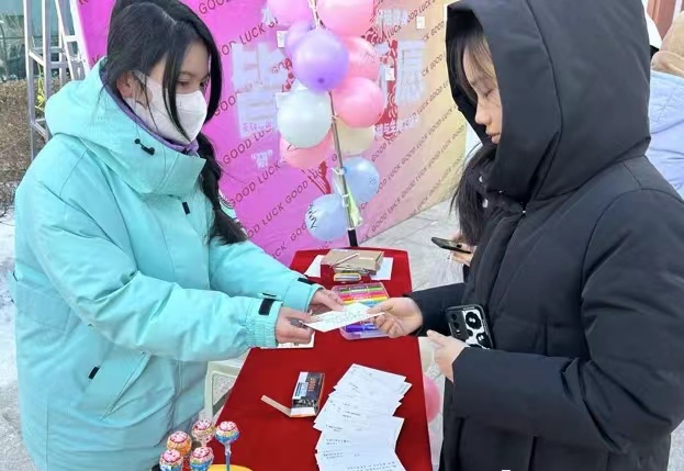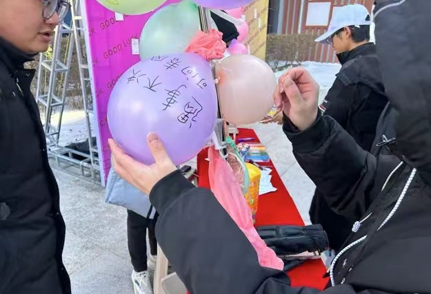 12月18日上午,我系在国旗广场设置考研助力加油站,在“皆如所愿”展板上,过往学生写上对考研学生的祝福话语、贴金榜题名留言贴、钉上师生祝福明信片,传递校园温暖的力量;扎破写有消极词汇的气球,释放备考期间负面情绪;发放寓意“棒”上有名的棒棒糖,给备考学子加油鼓劲儿。借此互动活动,营造温暖和谐的校园氛围,给予考研学子支持、鼓励,帮助疏解考研学子学习压力,陪伴和助力考研学子更好度过考研时光。
