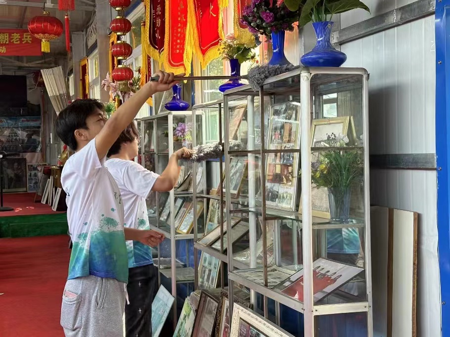 之后,我们准备好清洁工具,分工合作,从细致地擦拭展示柜的玻璃,到小心翼翼地清理每一件珍贵的展品;从认真清扫地面的每一个角落,在打扫的过程中,我们的内心充满感慨。这些展品不仅是历史的见证,更是老兵们爱国情怀和英勇无畏的象征。我们深知,我们所做的不仅仅是一次简单的清扫,更是对那段峥嵘岁月的缅怀,对英雄精神的传承。