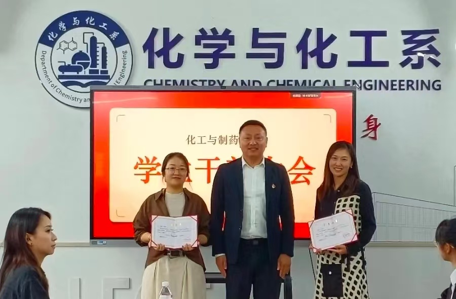 会后,都颖老师向王爽、李倩两位老师献上鲜花,对她们在原化学与化工系、环境与生物工程系团委工作中的无私奉献和高度责任感表达敬意,以及作出的突出贡献表达衷心感谢,并衷心祝愿两位老师在新的工作岗位上身体健康、工作顺利。