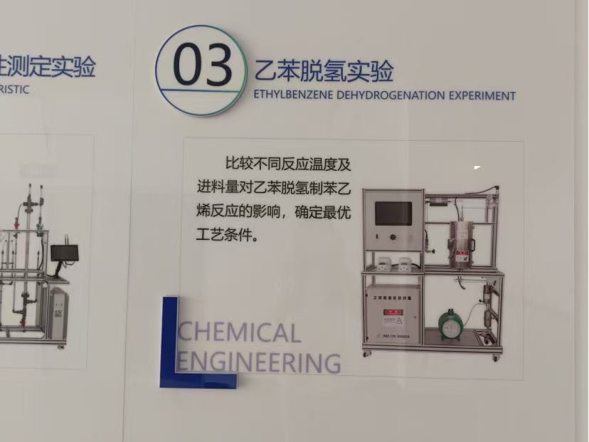 实验项目:《反应精馏实验》《管式反应器流动特性测定实验》、《乙苯脱氢制苯乙烯实验》等。