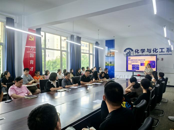在2025年7月2日化学与制药工程学院王欢教授作为获奖教师代表,就教学创新大赛的经验进行分享交流,王欢教授围绕参赛初衷、校赛历程、收获感悟与未来规划展开分享,为在场教师带来一场深度教学创新经验交流。