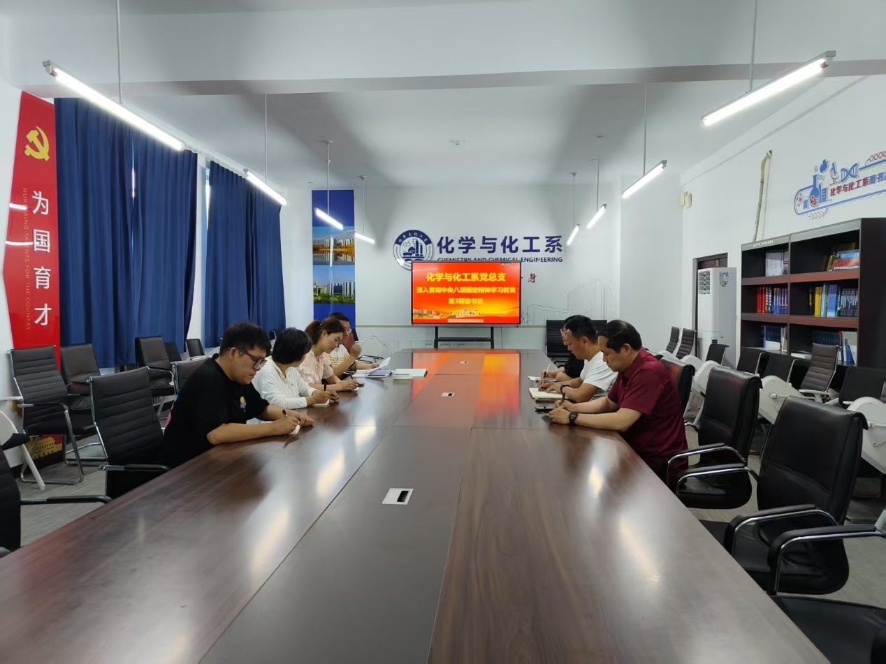 7 月 11 日,化工与制药学院召开深入贯彻中央八项规定精神学习教育第 3 期读书班暨党总支理论学习中心组专题学习会,总支委全体成员及各支部书记议参加会议。会议由都颖主持,常舒扬领学《党的十八大以来深入贯彻中央八项规定精神的成效和经验》、《党政机关厉行节约反对浪费条例》等内容。