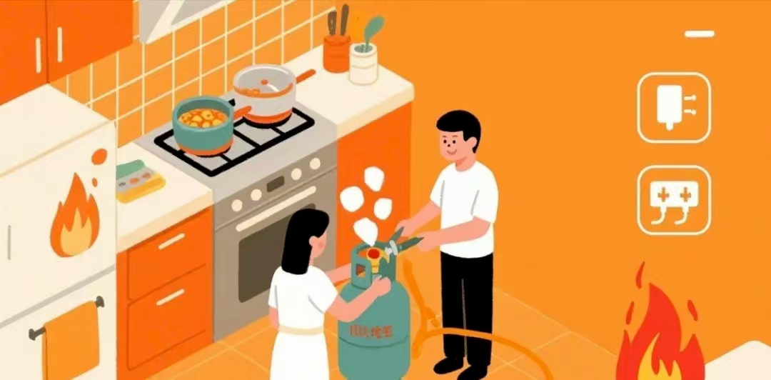 规范使用燃气,用完后关闭阀门,发现燃气泄漏立即开窗通风,严禁开关电器或使用明火,及时联系家长或燃气公司。不私拉乱接电线,不触摸破损电器,湿手不碰电源开关。