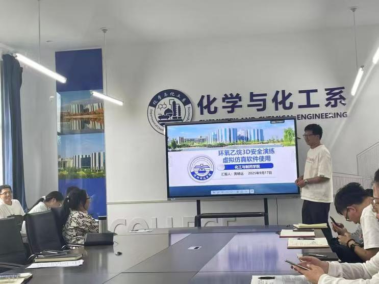 黄明远老师讲解环氧乙烷3D安全演练虚拟仿真软件的教学应用与实践效果。他介绍环氧乙烷的高危属性(爆炸极限宽、反应放热强)及传统实验教学难以实操的问题。随后演示基于欧倍尔云平台的3D软件,还原真实生产流程。软件具备沉浸感强、操作简便、安全等优势,实时反馈操作并生成考核报告。