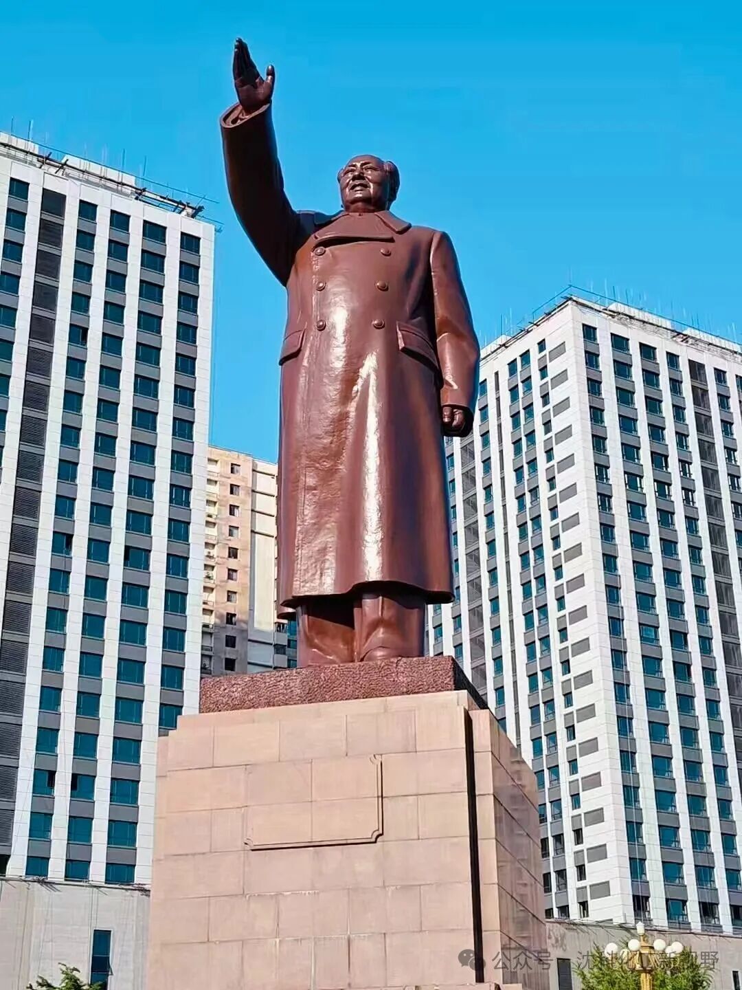 沈阳中山广场的毛泽东雕像,身着风衣、挥手伫立。铜塑在现代楼宇映衬下更显庄严,既定格了领袖的伟人风采,又成为城市精神传承的地标,在时光中诉说着信仰与奋斗的故事。