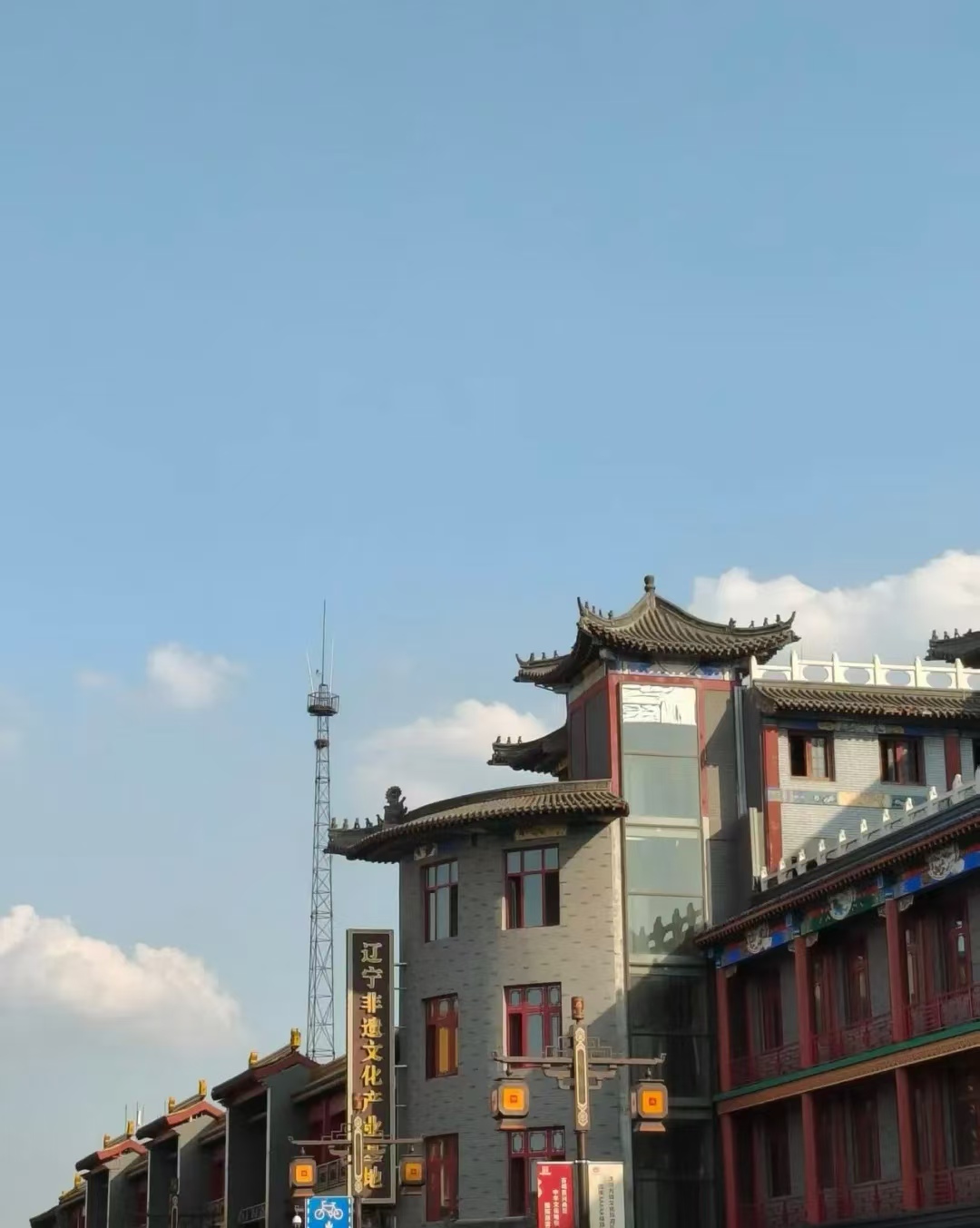 辽宁非遗文化产业地的建筑,灰墙黛瓦与飞檐彩绘相融,现代元素点缀其间。蓝天之下,传统与现代在此碰撞,既承载着非遗文化的传承使命,又以独特风貌成为展示辽宁文化底蕴的鲜活窗口。