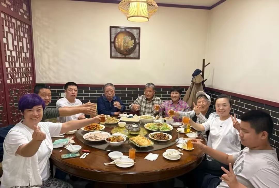 一家人围坐圆桌,满桌佳肴,举杯欢笑。中式装潢里,老少同堂,笑容灿烂,手势俏皮,满是团圆的暖意,定格了亲情交融的幸福瞬间,道尽烟火人间的温情脉脉。