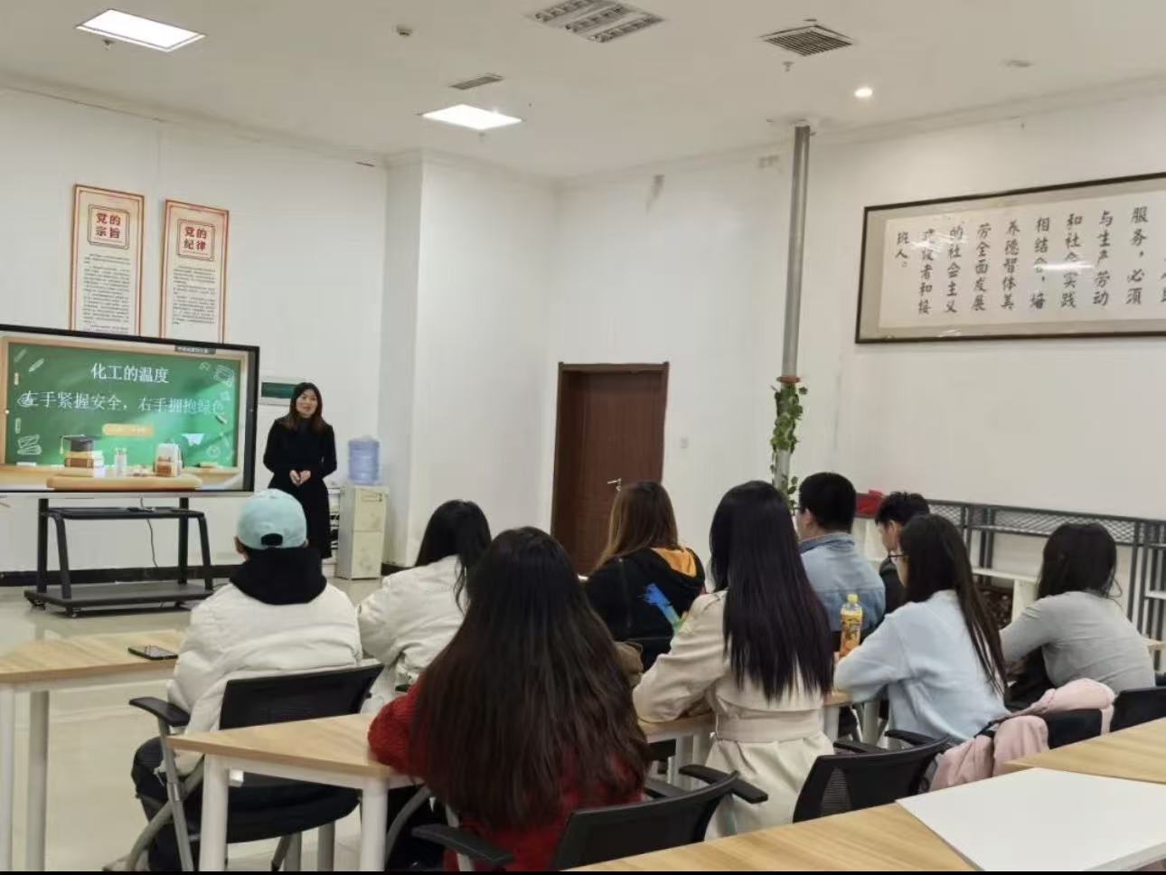 尚冬梅老师以“化工的温度”为主题向大家传授化工知识,先讲述化工安全的重要性,再制定安全管理措施;强调绿色环保的化工理念,鼓励大家采用环保工艺、资源循环利用、发展绿色产品。此外,尚冬梅老师还特别指出绿色环保的必要性,提高学生的环保意识,面对难题攻坚克难,典型案例分析研讨。