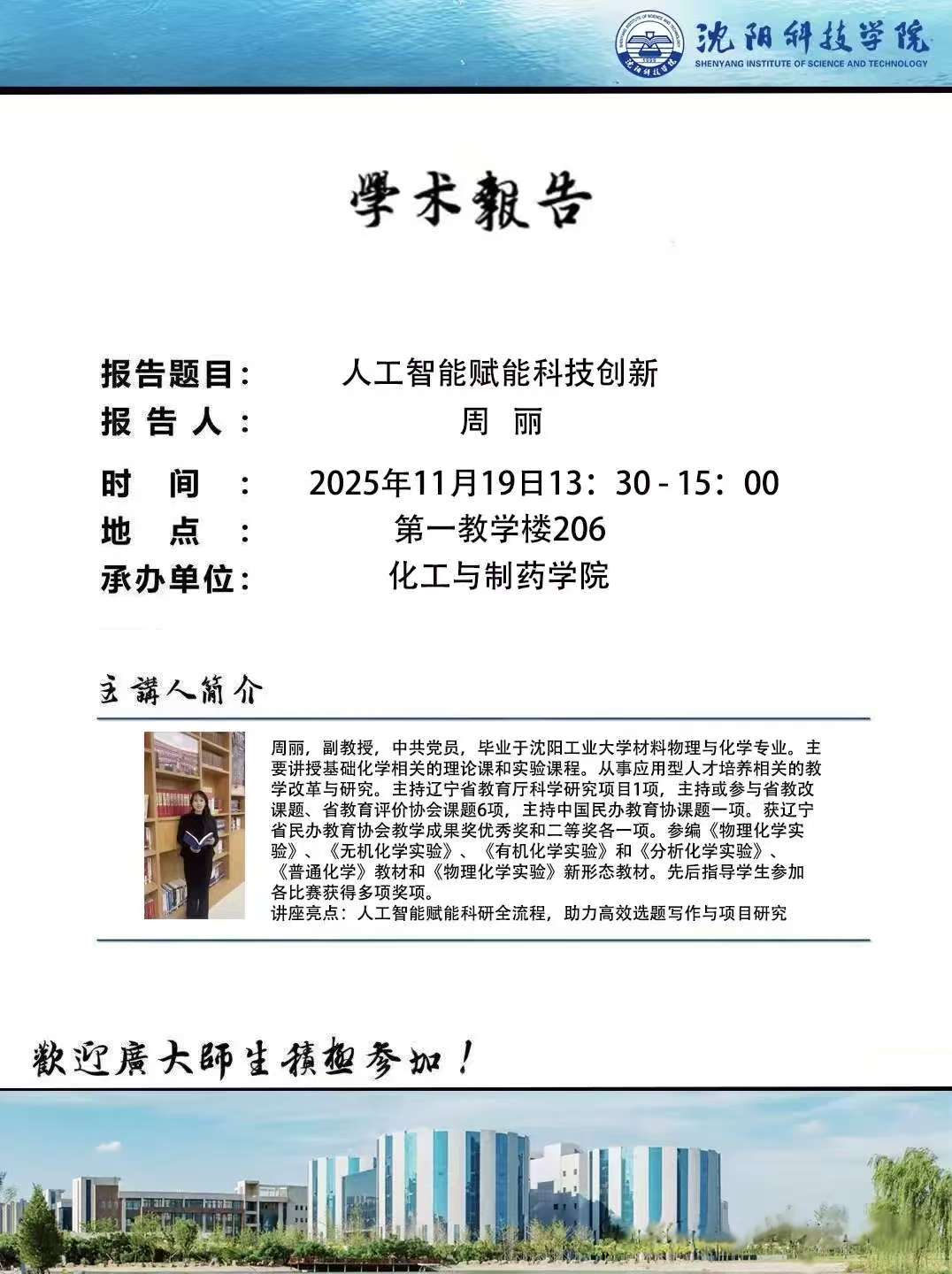 【讲座预告】人工智能赋能科技创新