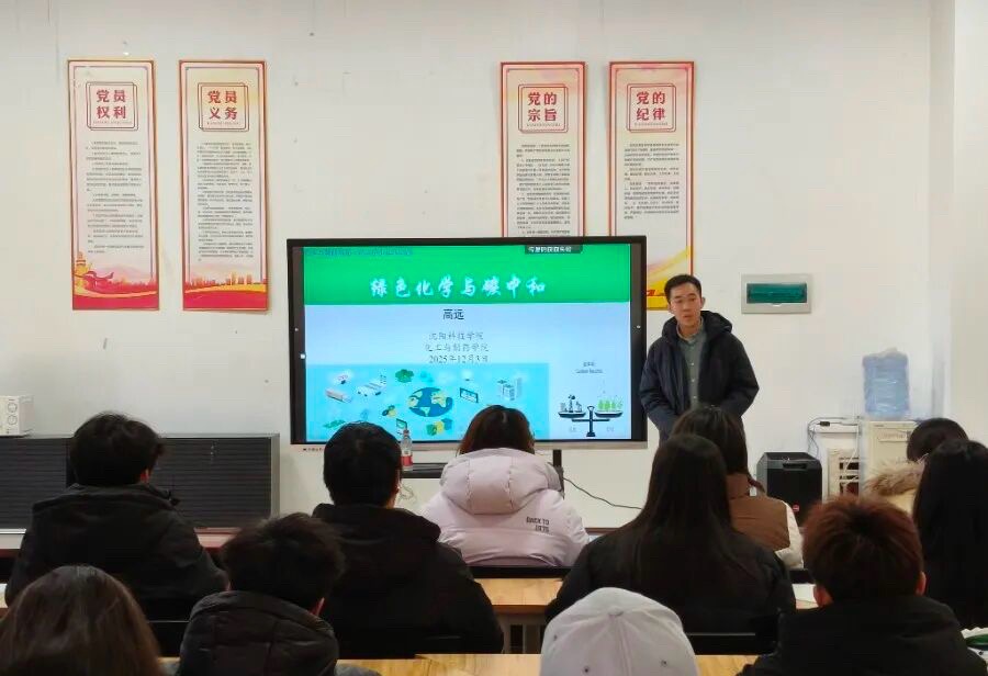 2025年12月3日,我院在星海社区103举办了“绿色化学与碳中和”主题讲座,学院高远老师主讲,阐释了全球气候变化与温室气体排放的科学机制,并深入探讨了绿色化学在实现碳中和目标中的关键作用,为师生带来一场聚焦科技前沿与可持续发展的知识盛宴。