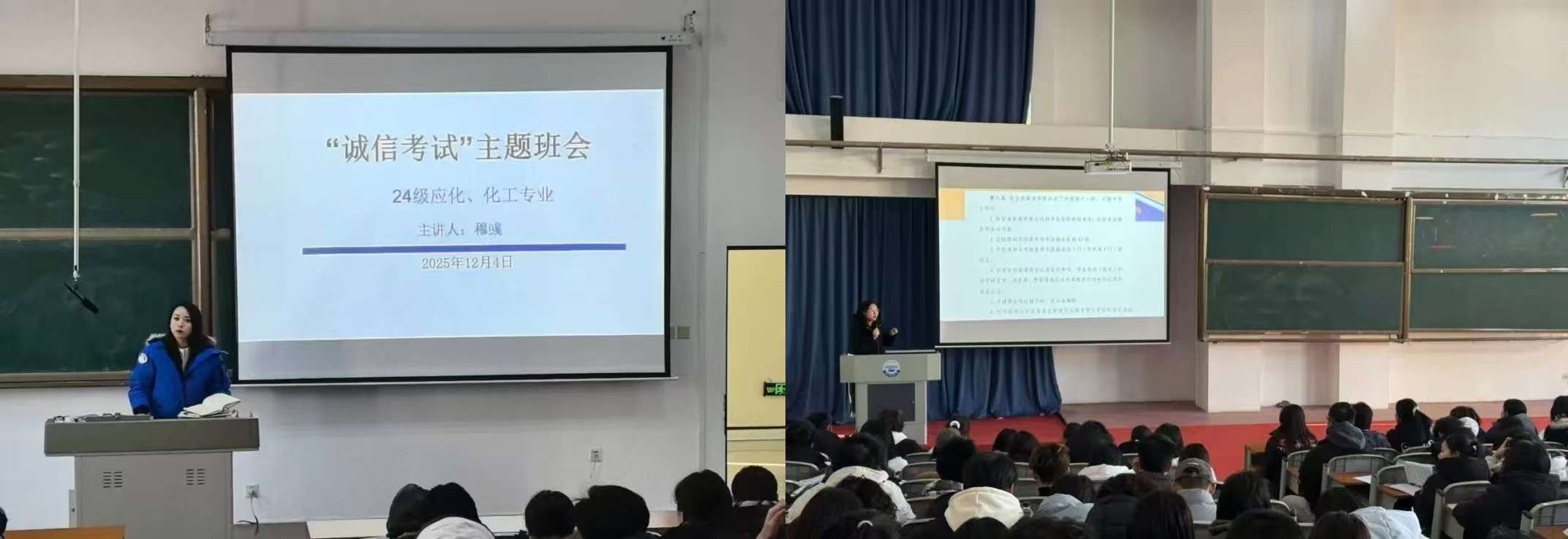 针对2025级新生班会,教育重点聚焦于“诚信认知启蒙”,通过详细解读了《学生考试违规处理办法》中关于考试违规处理的相关规定,结合实际案例帮助新生理解“诚信是学业底线”的重要意义,引导学生树立正确的价值观,筑牢思想防线。