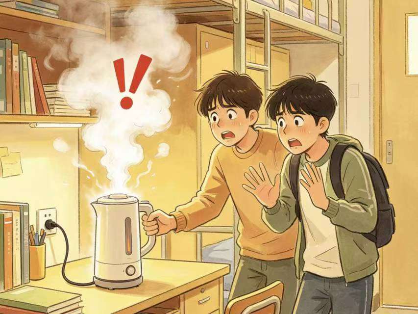 在寝室不使用或存放吹风机、卷发棒、电锅、电热毯、暖手宝等违章电器,及劣质用电设备。这类大功率设备远超寝室电路承载能力,不仅易跳闸,更会引发线路过热燃烧。