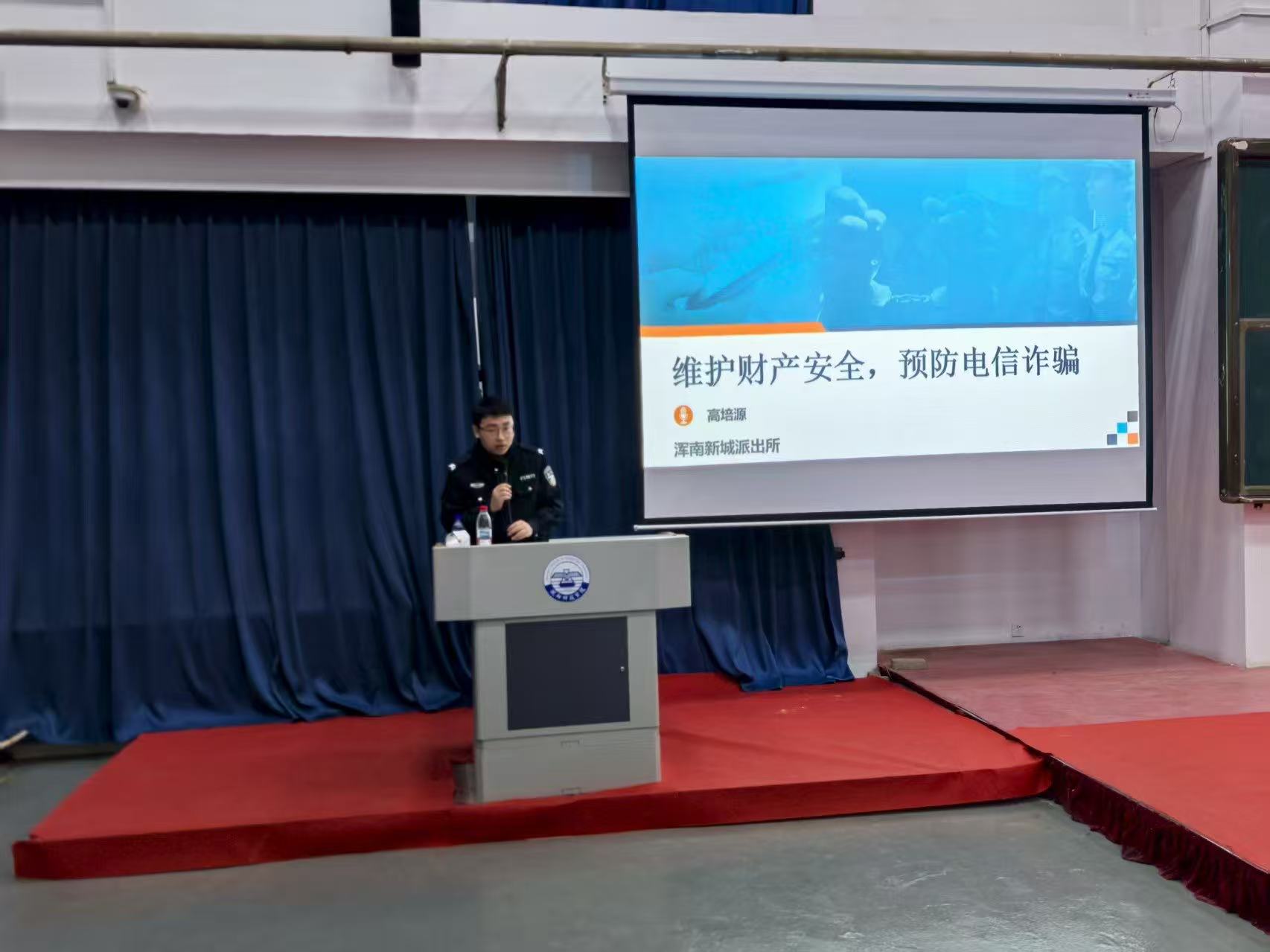 本次宣传会特别邀请到沈阳市公安局浑南新城派出所辅警高培源警官。高培源深耕反诈一线多年,实战经验丰富、业务能力精湛,擅长案例拆解、话术还原与实用防范技巧传授,长期为辖区高校师生开展反诈专题讲座。工作中,他聚焦校园高发诈骗类型,及时与反诈预警学生沟通联系,结合一线办案经验,用通俗易懂的方式普及安全知识;此前还曾在迎新晚会等活动中,通过文艺宣传等形式拓宽反诈覆盖面,全力守护学生“钱袋子”安全。