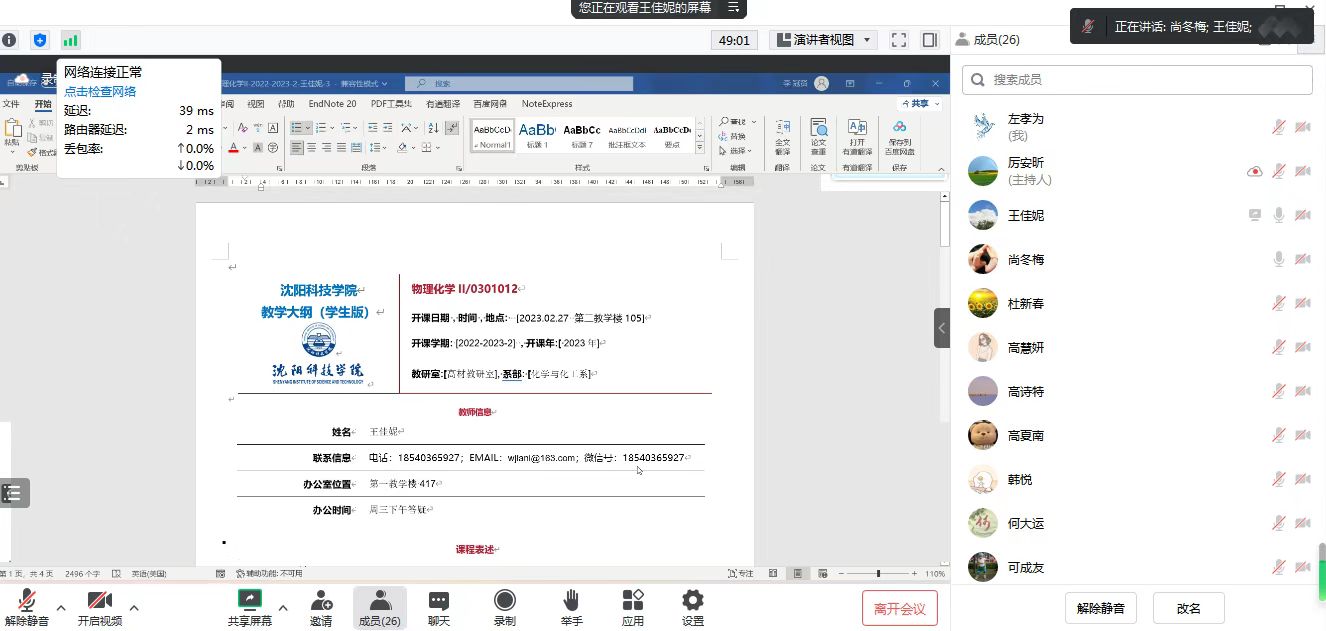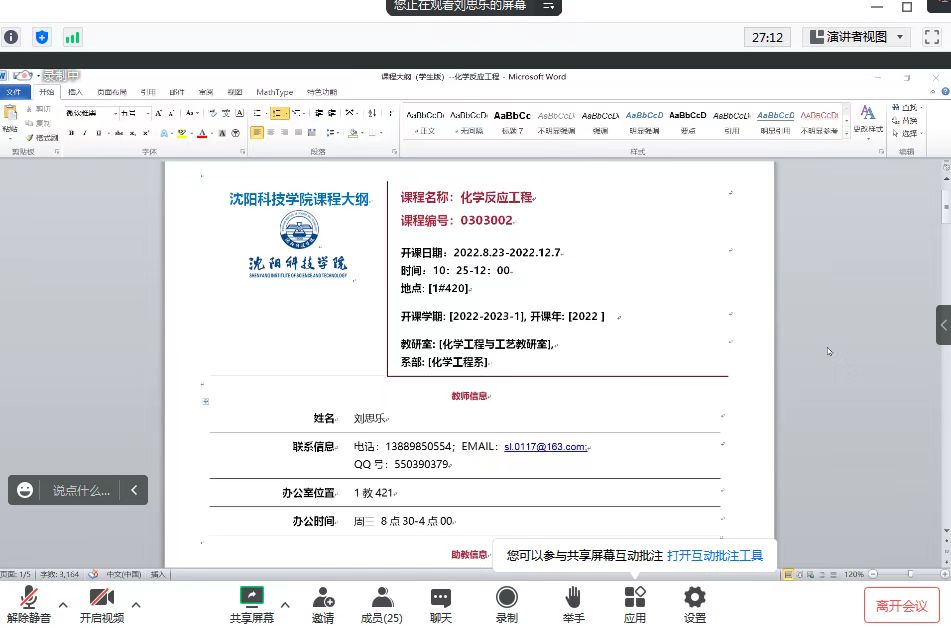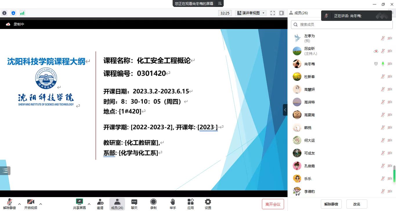 2023年2月10日,化学与化工系举办以“课程大纲(学生版)”为主题的研讨会。课程教学大纲是教师指导课程教学的纲领性文件,规定了课程性质、教学目的、教学内容、学时安排、教材及参考书等,是培养方案的具体体现和落实,是组织教学、指定授课计划、编写教材及教学质量检查的主要依据,也是课程建设和课程评估的重要内容。课程大纲(学生版)是在课程教学大纲的基础上编制得到。其目的是引导学生更好的学习课程。学生在开课之前即可了解课程性质、学习目的、学习内容等,以及学完后将达到的预期水平。有助于学生为职业目标规划合理的学习计划,并为未来自我提升性学习提供参考。