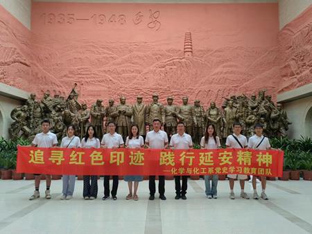 习近平总书记在党的二十大闭幕后瞻仰延安革命纪念地时指出,“在延安时期形成和发扬的光荣传统和优良作风,培育形成的以坚定正确的政治方向、解放思想实事求是的思想路线、全心全意为人民服务的根本宗旨、自力更生艰苦奋斗的创业精神为主要内容的延安精神,是党的宝贵精神财富,要代代传承下去。”在向全面建成社会主义现代化强国进军的新征程中,为教育引导文理青年全面深刻理解把握延安精神的丰富内涵,继承光荣传统、矢志团结奋斗。7月20日,化学与化工系暑期“三下乡”社会实践团队前往革命圣地延安开展“寻红色记忆,筑青春之梦”社会实践活动。
