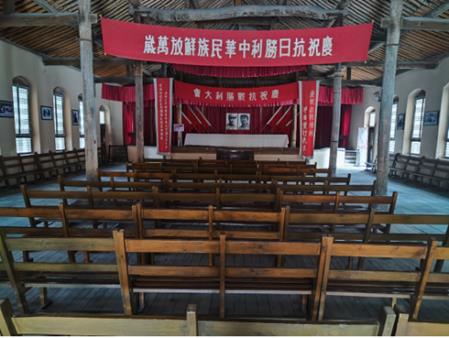 实践队进入王家坪革命旧址,映入眼帘的就是中央军委大礼堂,这是七间高大宽敞、四角翘起的大瓦房,可容纳近千人,在这里,军委和总部领导军民坚持十四年抗战,取得了抗日战争的伟大胜利,又粉碎了国民党军队对解放区的"全面进攻",并为战胜其"重点进攻"作了充分准备。