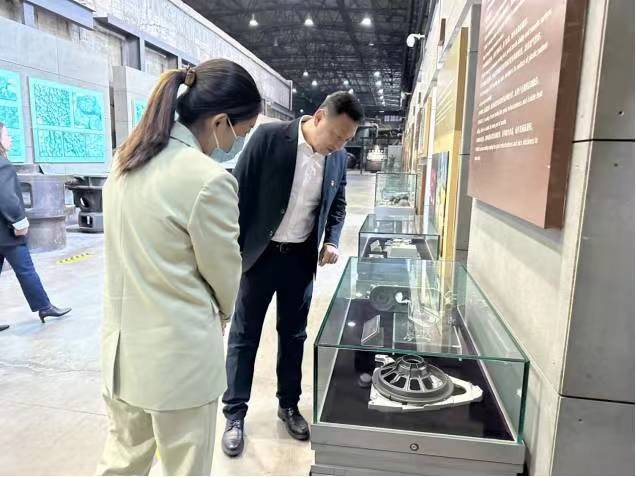 进入展馆大厅,迎面是一幅巨大的名为《铁流凝变》的铜质浮雕,表达第一炉钢水来之不易,象征的是中国工人阶级一往无前的精神,体现的是沈阳老工业基地完成华美转身后凤凰涅槃般的壮美,展现了中国工业辉煌磅礴的气势。随后,大家逐一参观了通史馆、机床馆、铸造馆、汽车馆、铁西馆、冶金机械展区和外国机床展区。博物馆根据年代不同,展示了近代工业革命至今各时期、各国家的机床、汽车、铸造设备以及以“铁西百年记忆”为主题的铁西馆,里面展示百年来铁西的工业发展史。大家参观的同时,思绪也随着这些历史起伏变迁,这些工业遗迹用斑驳锈迹讲述着曾经的拼搏和过往的峥嵘岁月,更深深地印证它所承载的厚重。