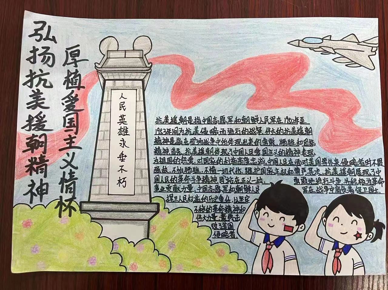 为引导大学生树立忠诚爱国的价值观,强化大学生的使命感和责任感,增强大学生爱国主义情怀,在抗美援朝出国作战74周年纪念日之际,我系于202446日举办了以弘扬抗美援朝精神,厚植爱国主义情怀为主题的手抄报比赛。