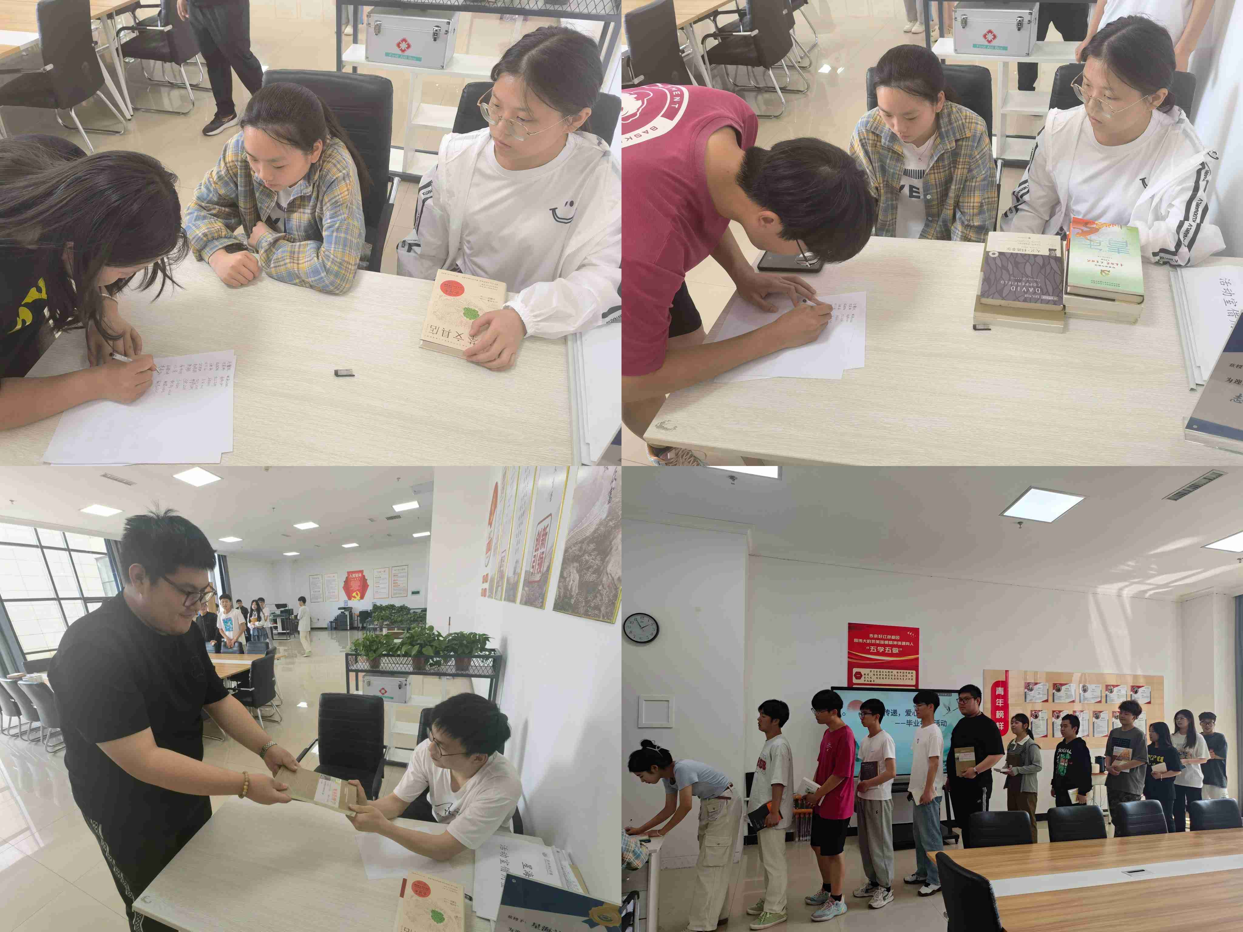 活动期间,毕业生们纷纷将自己珍藏的书籍捐赠出来,有的还在书上写下了对母校和学弟学妹们的祝福和寄语,一本本书籍不仅寄托了毕业生们对大学时光的回忆和感悟,也传递了他们对知识和阅读的热爱和尊重。