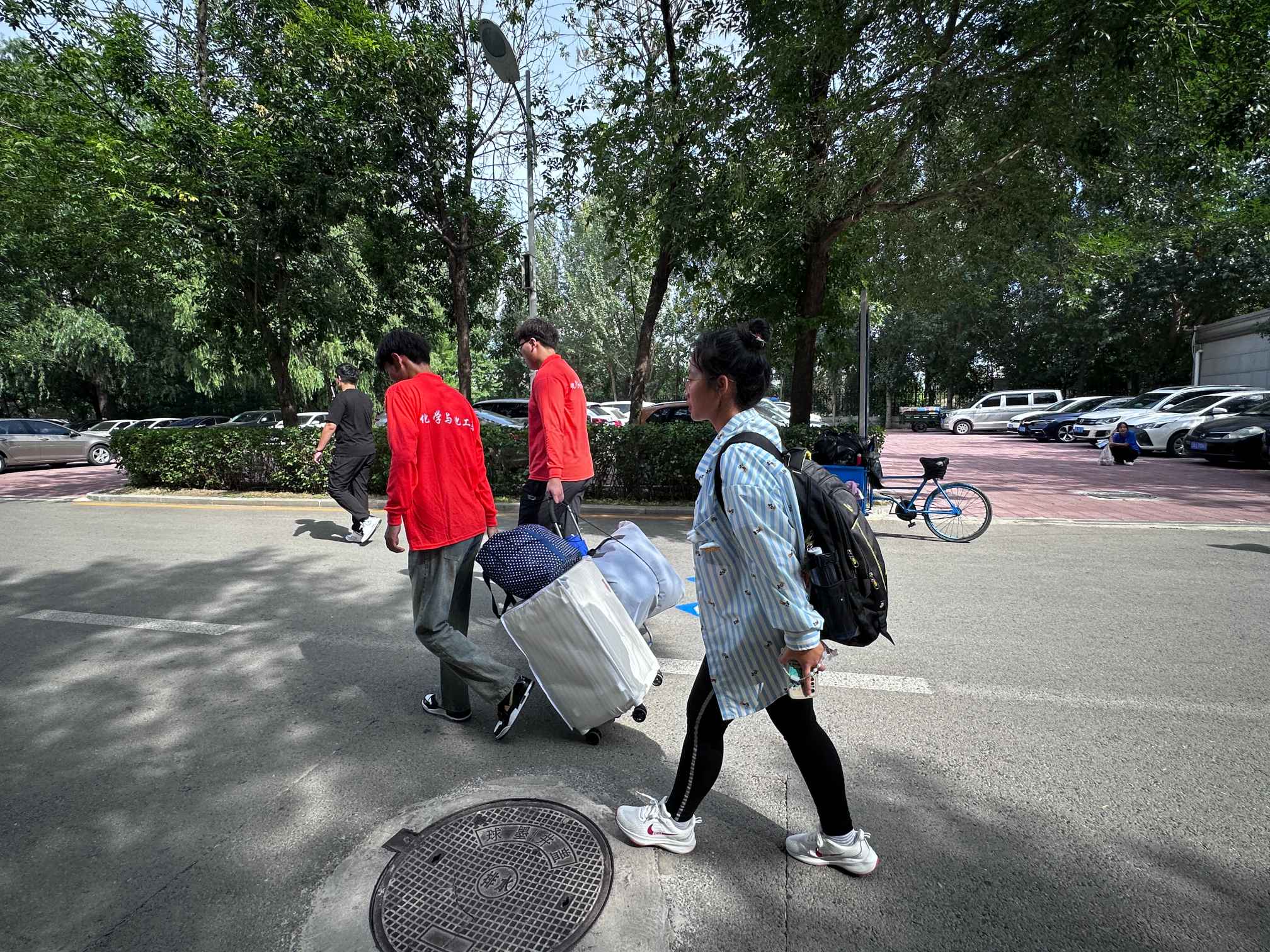 负责在等待区等待的志愿者们,他们主动接过行李,带领新生们前往所在区域报道和办理手续,并且引领新生们前往所在宿舍,途中为新生及家长们介绍校园情况,解答新生和家长们的疑问。在炎热的天气下,志愿者们用他们礼貌的态度和坚实的肩膀向新生和家长们回应着“放心”。