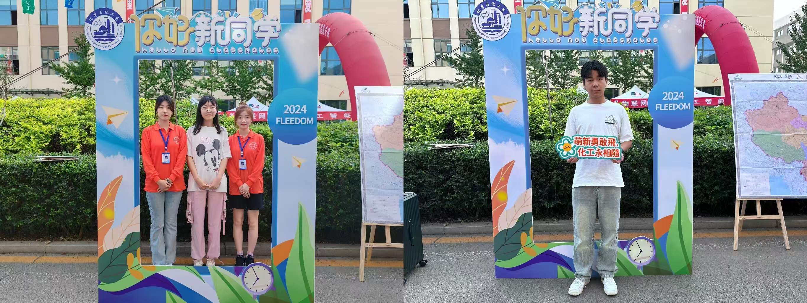 志愿者们准备充分,精心的在所在区域旁设立形式多样的打卡地,准备了精美亮丽的手举牌,作为新生到校的惊喜,吸引着刚到学校的新生们的目光,使得新生们纷纷驻足,与自己的家人打卡拍照,留存下在新学校的第一张照片。