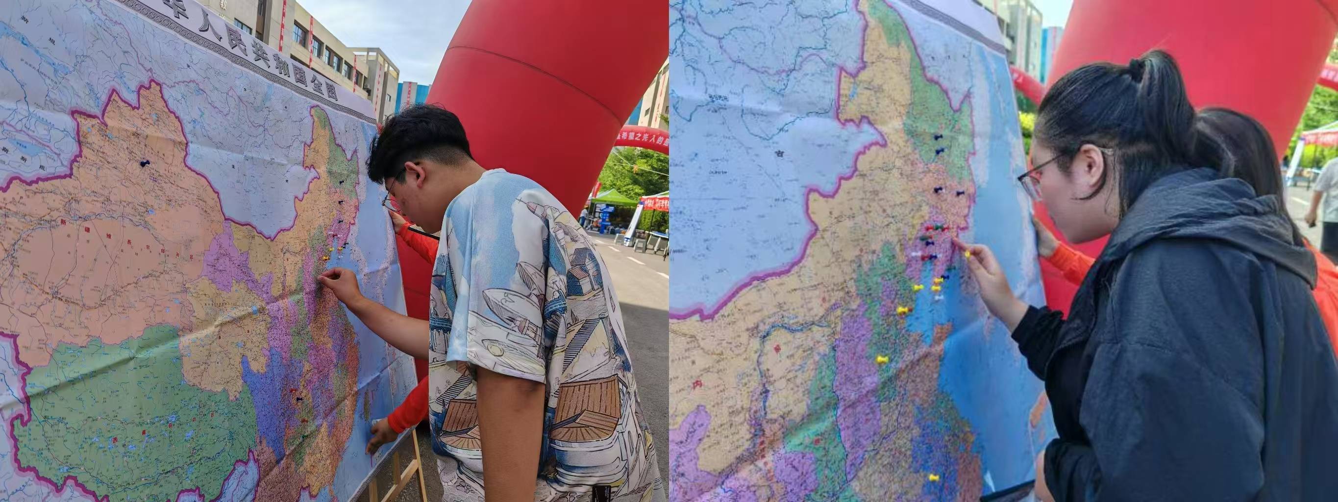 志愿者们还精心的准备了中华人民共和国全图,让新生们在拍照打卡是后标注自己的家乡,这是民族情怀的体现,也可以更好促进各班新生团结互助。
