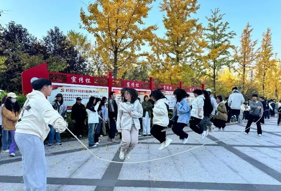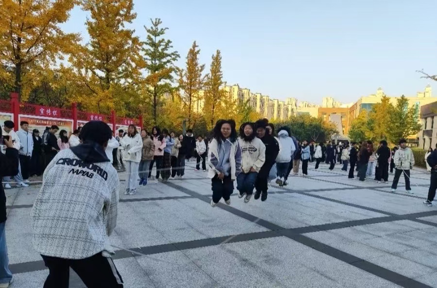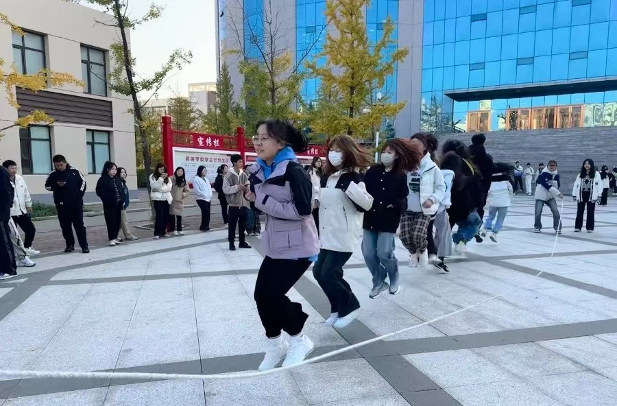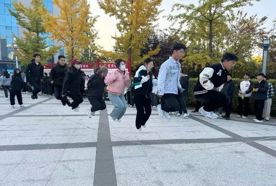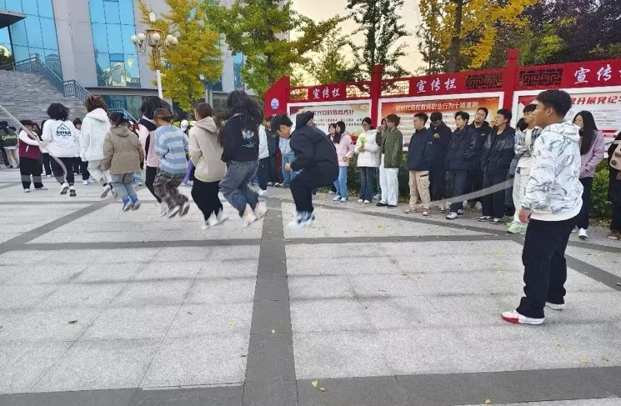制药三班也毫不逊色,同学们身姿矫健,动作敏捷,在绳间穿梭自如,他们的热情如同秋日的暖阳,镶嵌在文明校园的画卷中。