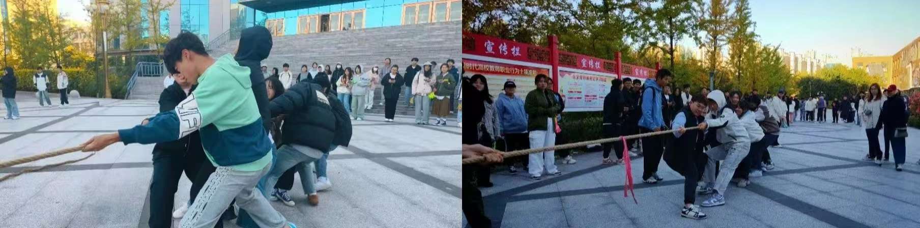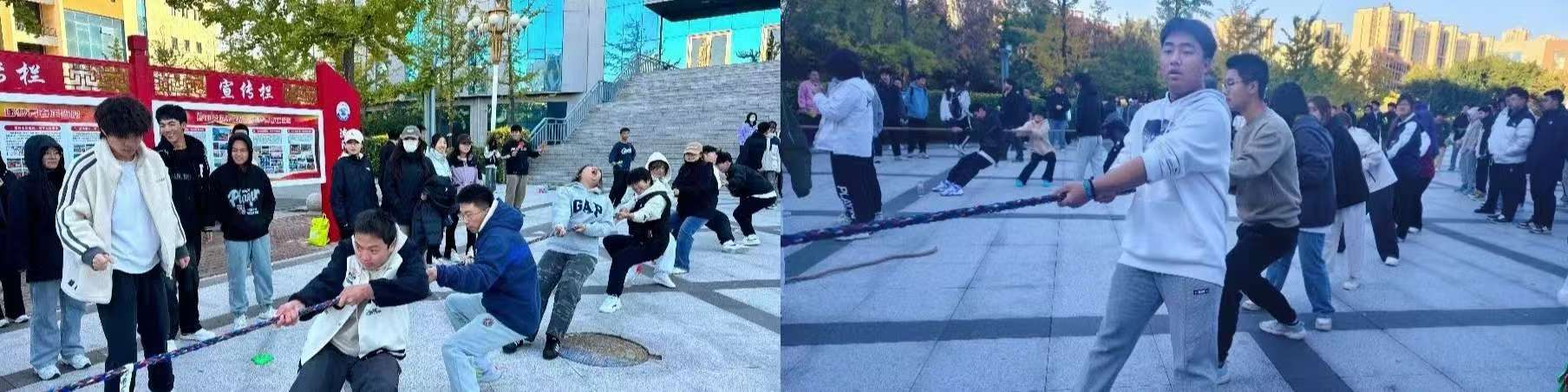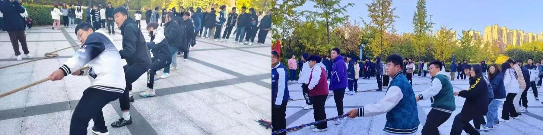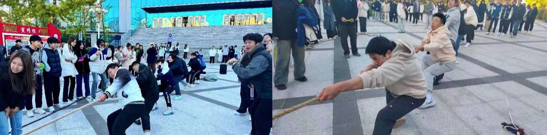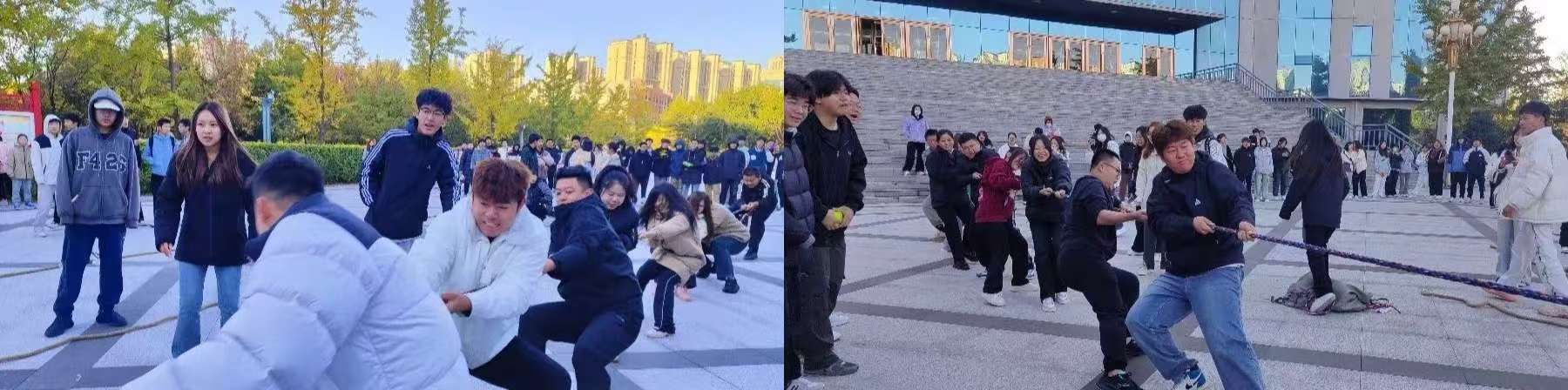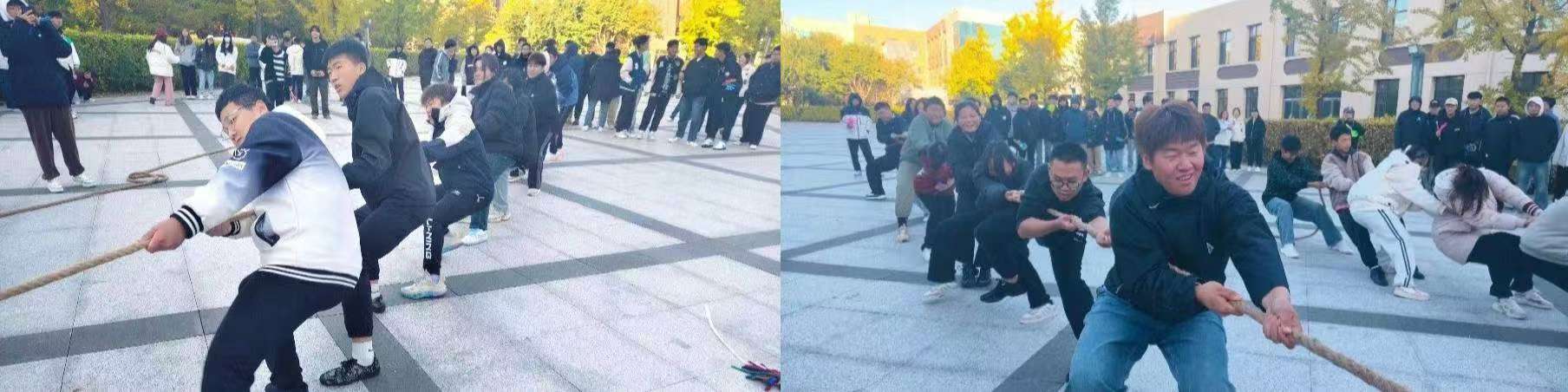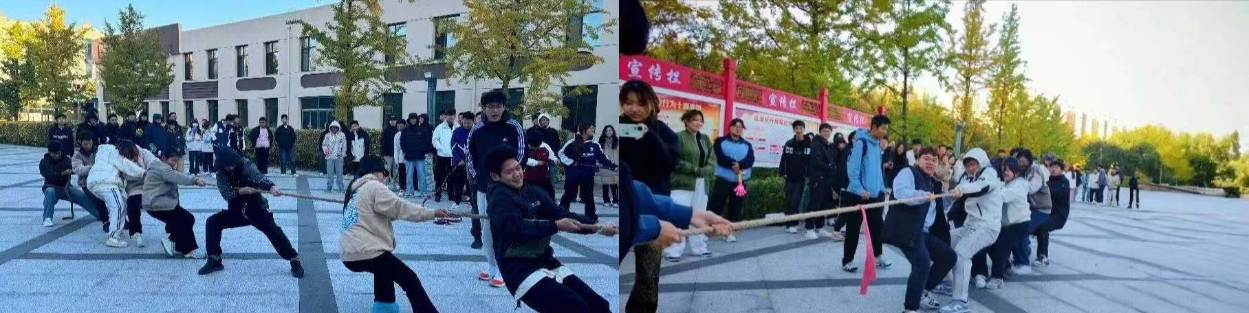 为了增强新生们的身体素质,培养积极向上的进取精神,促进各班级间的相互了解与交流,化学与化工系于10月11日在图书馆门前举行了一场振奋人心的拔河比赛。当一声清脆的哨响拉开比赛的序幕,运动员们展开了激烈的比拼。参赛运动员们用精彩非凡的表现演绎了奋斗的姿态,凝结了勤奋的汗水,展现出自信的风采。薄汗透衣衫,清风绕指缠,云天收秋色,学子展风采,汗水与喜悦交织共融,拼搏与感动同频共振。