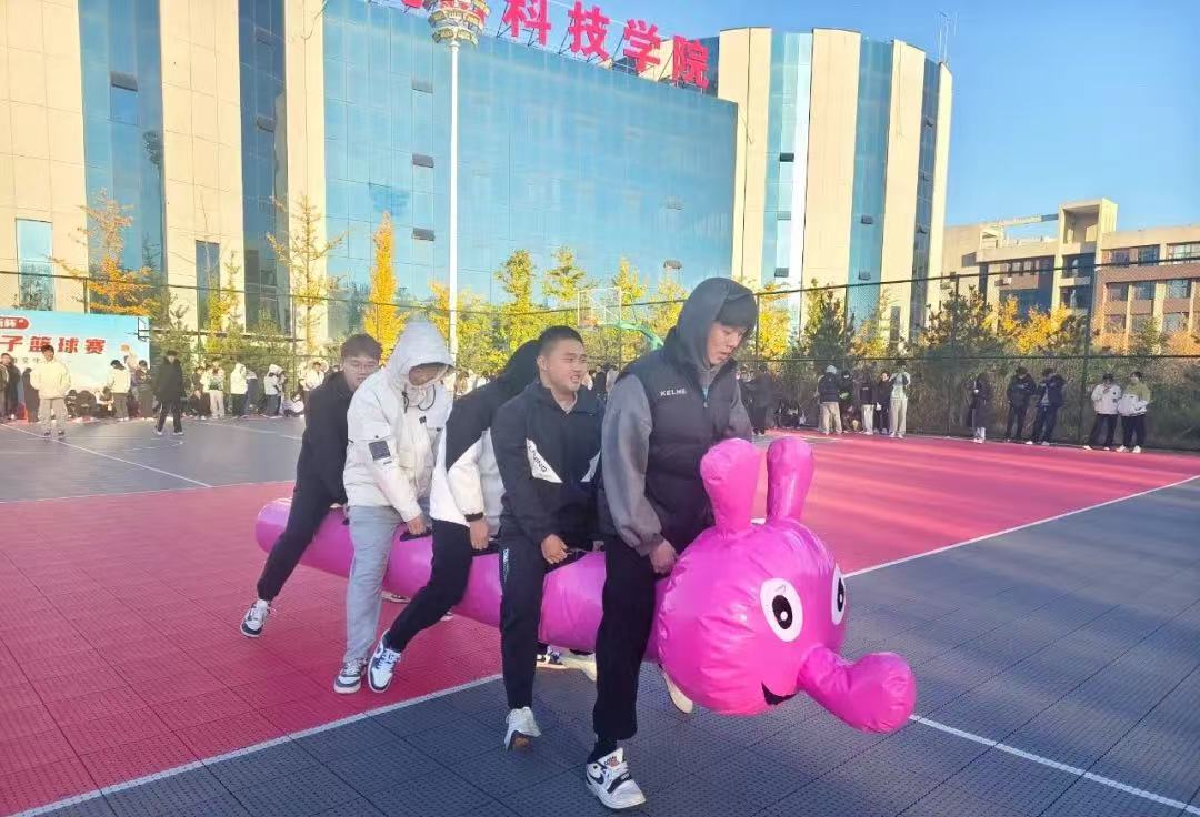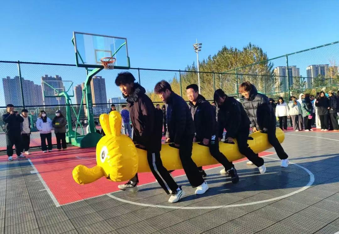 随着裁判员的一声哨响,毛毛虫趣味运动会正式拉开帷幕。参赛队员们骑在充气后的毛毛虫上,双手紧握固定把手,随着一声令下,大家齐心协力,步伐一致地向前冲刺。操场上, 呐喊声、加油声此起彼伏,同学们的脸上洋溢着欢笑与汗水,充分展现了青春的活力与激情。