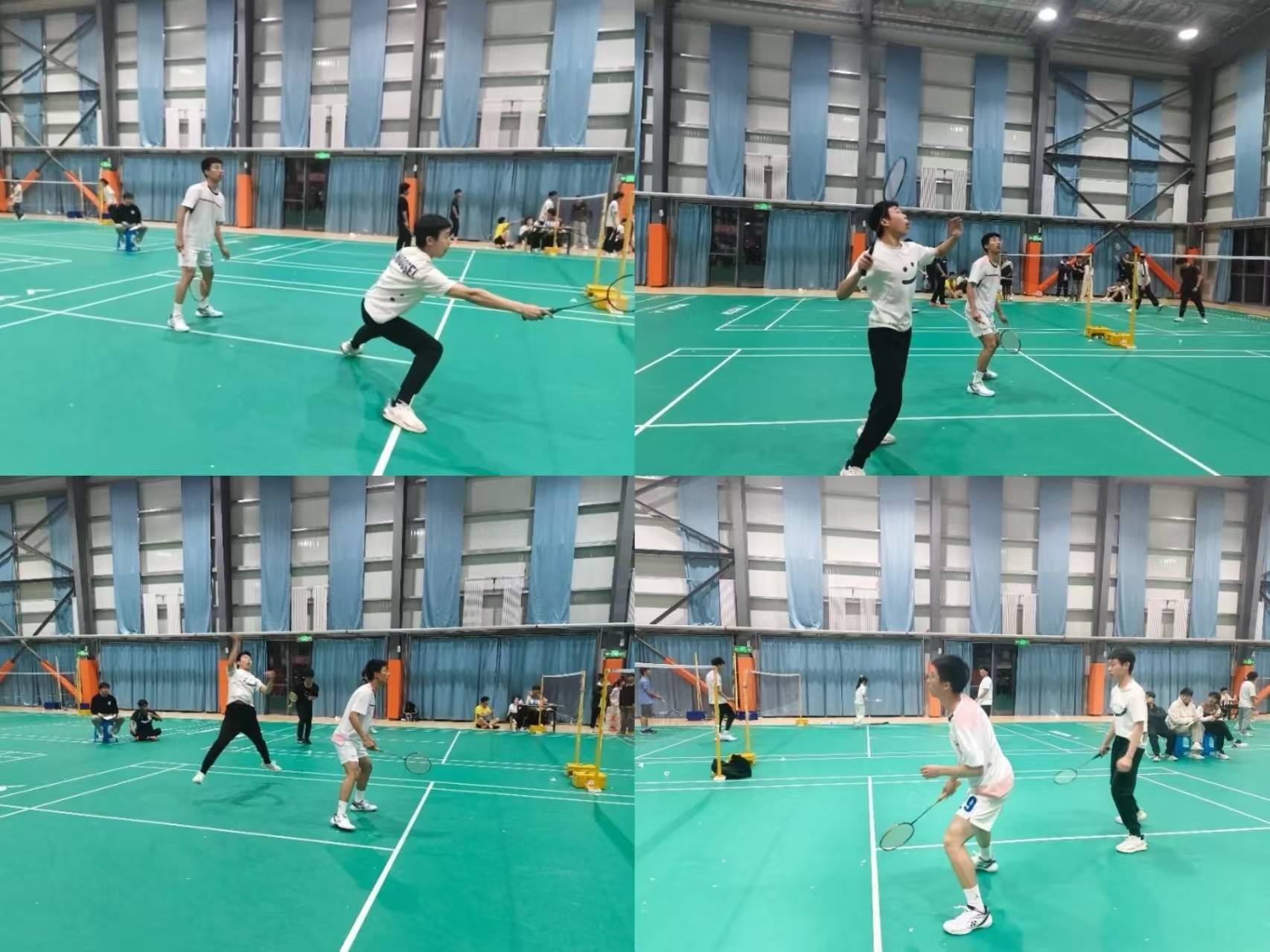 选手们的目光聚焦在羽毛球上,全身心沉浸在比赛中,他们追求速度、灵活性和精准度,力争发挥自己的最佳水平。观众们席地而坐,为运动员们鼓劲加油,他们欣赏比赛中的技术细节,感受到运动带来的快乐和激情。比赛中的每一个瞬间都充满了紧张和战斗的气氛,每一个得分都是选手们拼搏的结果,也是对付出努力的回报。