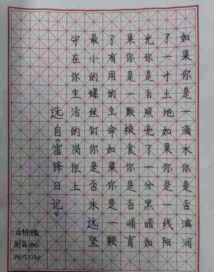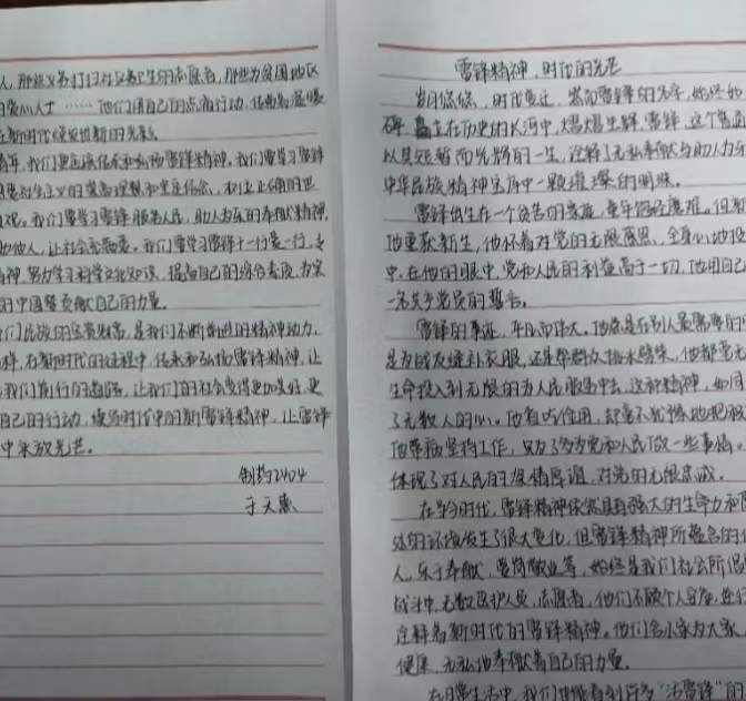本次比赛以“雷锋精神”为主题,大家通过书法、绘画的形式,生动再现了雷锋助人为乐、无私奉献的感人故事。每一幅作品都凝聚着同学们的心血与创意。经过对大量提交的绘画作品评选的主题、作品是否完整等进行筛选,最终评选出以下优秀作品。书法是以汉字为依托、笔墨为媒介的独特艺术。历经甲骨文、金文、篆书、隶书、草书、楷书、行书的演变,借笔法、结构、章法,以提按、轻重、缓急运笔,于黑白间构建韵律,承载中华文化,彰显书者心境与审美,是华夏文明的艺术瑰宝。许多书法家会以雷锋为主题进行书法创作,通过笔墨书写雷锋的事迹、名言,如“向雷锋同志学习”等字样,以书法作品的形式来传播雷锋精神,让更多人受到感染和教育。这些书法作品可以在展览、文化活动等场合展示,起到宣传雷锋精神、传递正能量的作用。