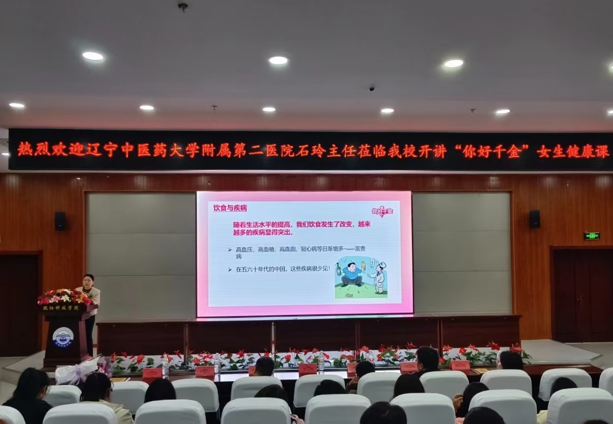 为提高女大学生的健康意识,普及女性健康知识,5月8日伟德国际victor1946联合千金药业举办“你好千金-女生健康中国行”公益讲座。“你好千金-女生健康中国行”东北区负责人周海渔,千金药业东北区负责人刘冬华,千金协力药业东北区负责人马明,伟德国际victor1946党总支书记都颖,党总支副书记常舒扬,学工办老师穆彧参加此次讲座。主讲人为辽宁中医药大学附属第二医院石玲主任。