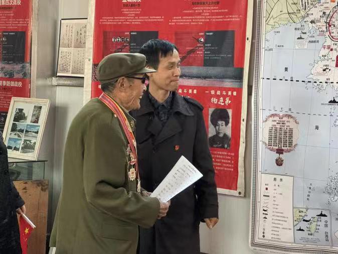 最后,党支部书记赵朋亮与主任刘慧两位老师跟随孙德山老战士的脚步,观赏描述当时抗美援朝时期的珍贵记录。同时,党支部书记赵朋亮也诚挚的邀请孙德山老战士莅临我校,进行抗美援朝爱国主题教育专题讲座。