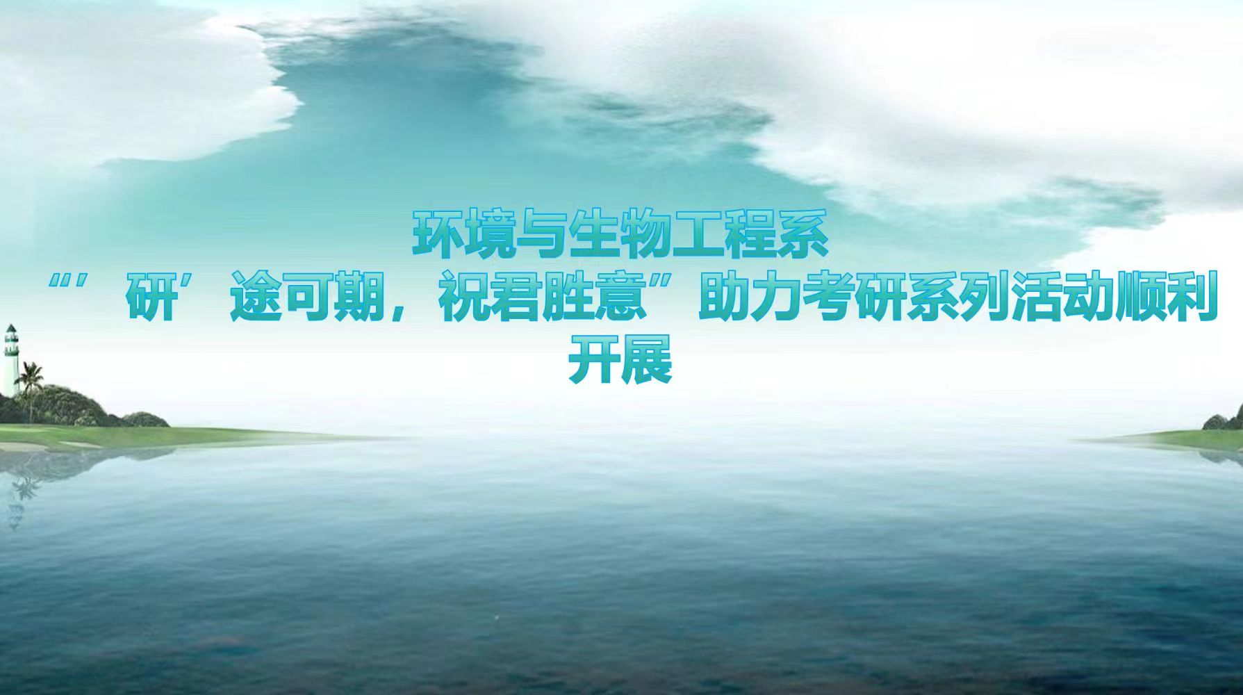 为坚定考研学子备考信心,缓解备考压力,传递温暖祝福,2023年12月15-18日,环境与生物工程系开展“’研’途可期,祝君胜意”助力考研系列活动。...