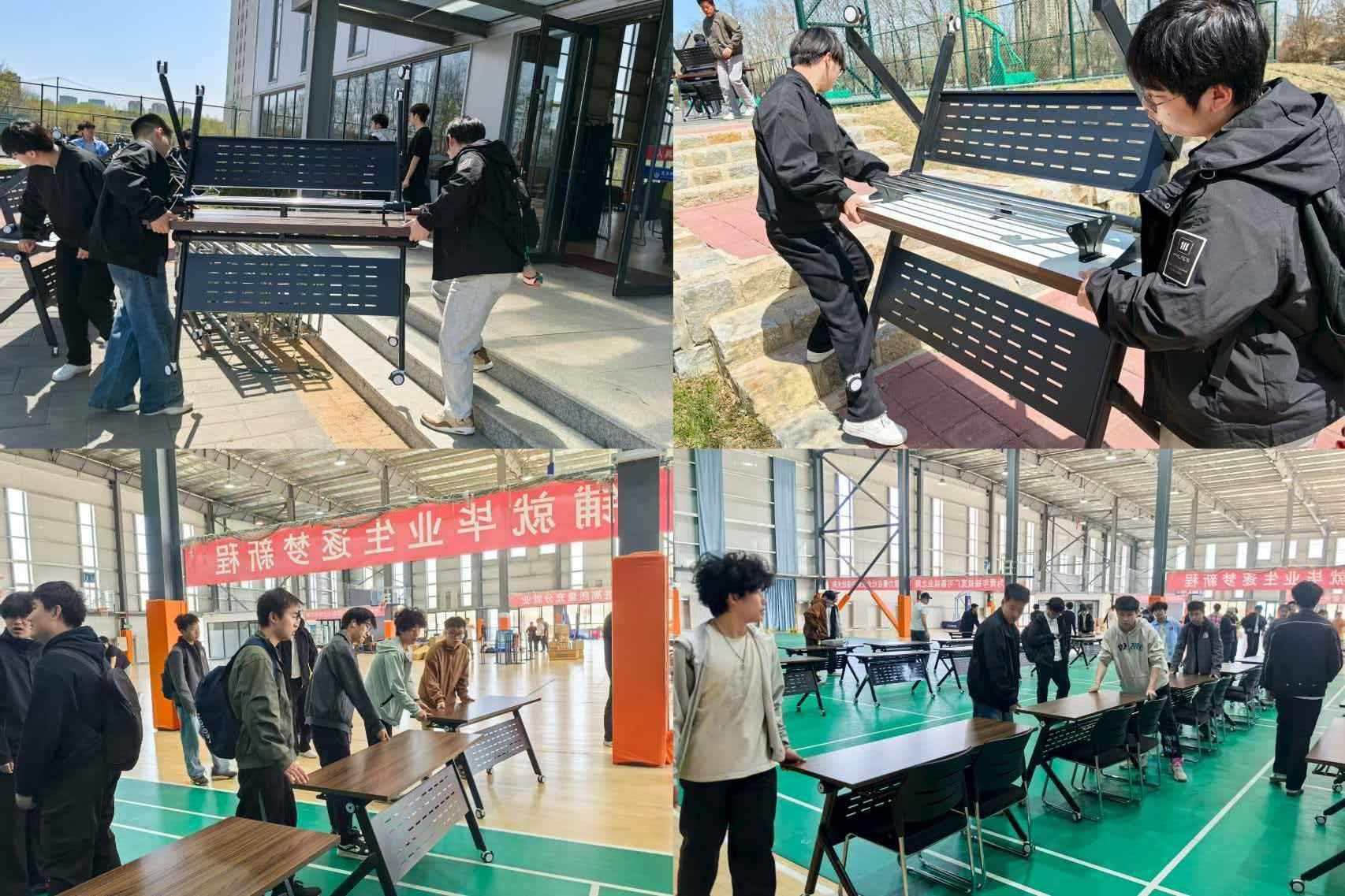 4月21日,距离双选会正式开幕还有一天,伟德国际victor1946的志愿者们已早早集结在风华体育馆。在活动负责人的统一调度下,志愿者们分工协作,有序开展场地布置工作。从桌椅搬运、展位搭建,到企业指引牌摆放等,每一个环节都力求细致到位。尽管任务繁重,但志愿者们干劲十足,反复核对,动线流畅。经过几个小时的紧张工作,招聘展位整齐排列,场馆内标识清晰、环境整洁,为次日双选会的顺利举办奠定了坚实基础。