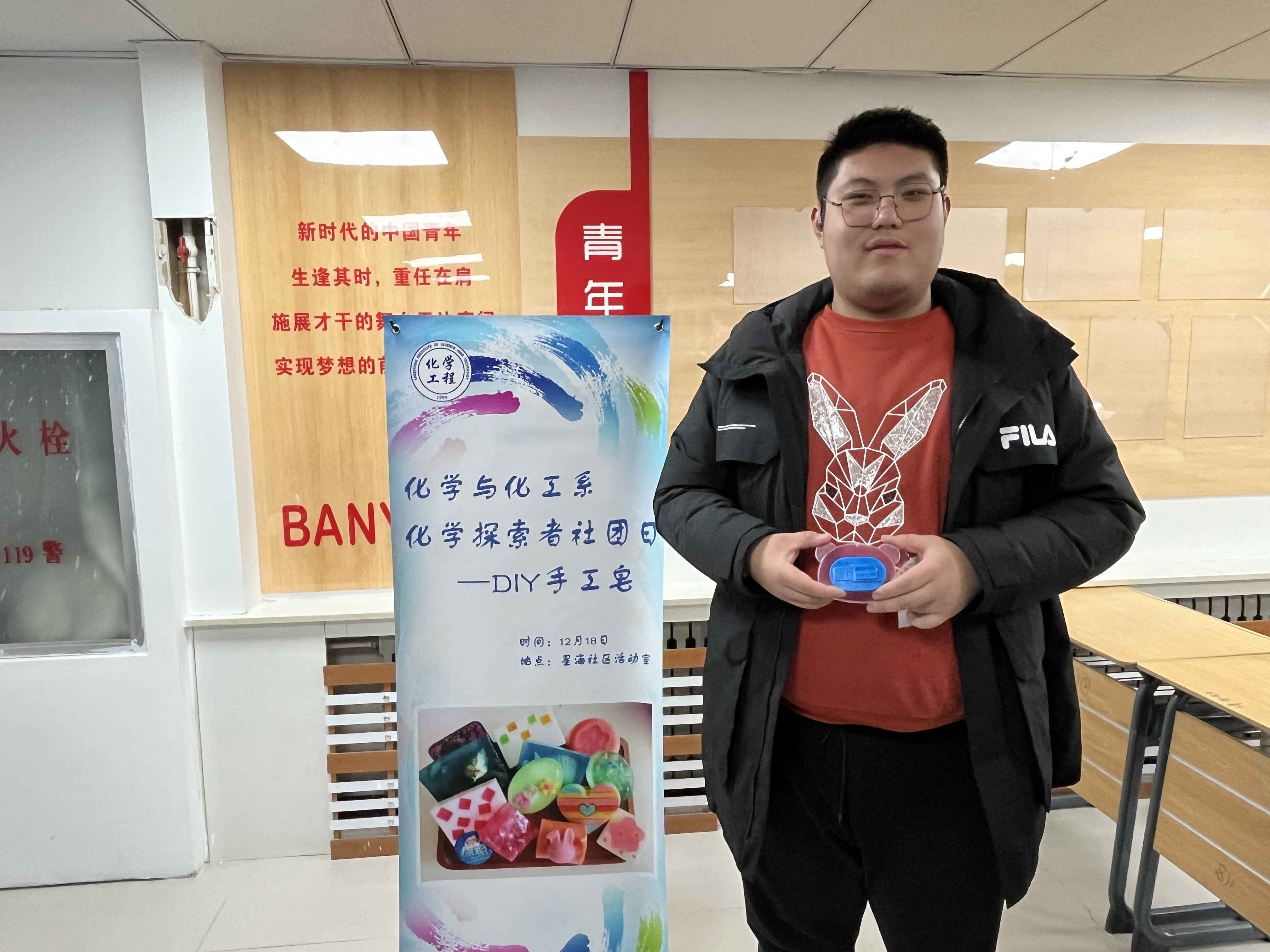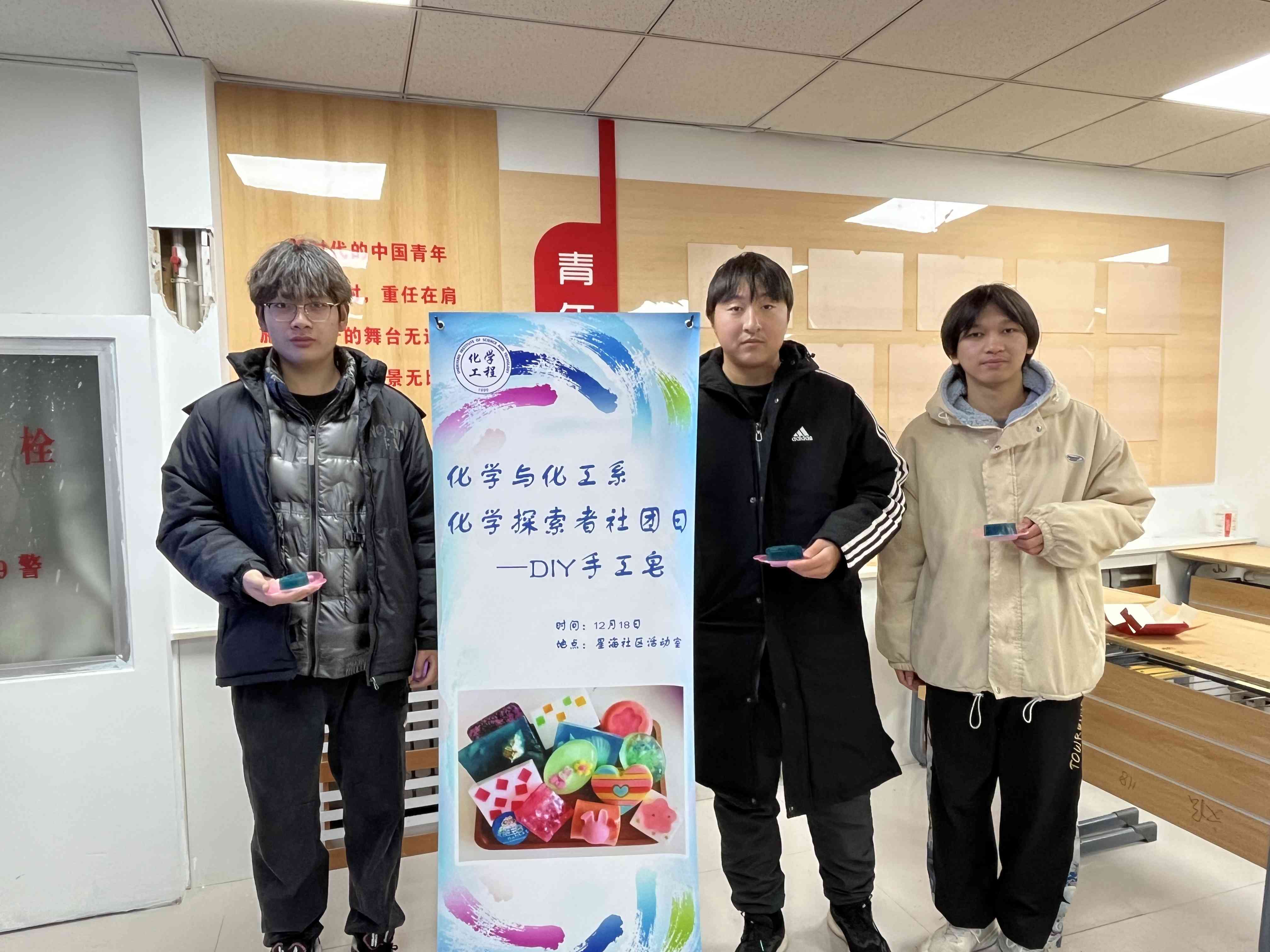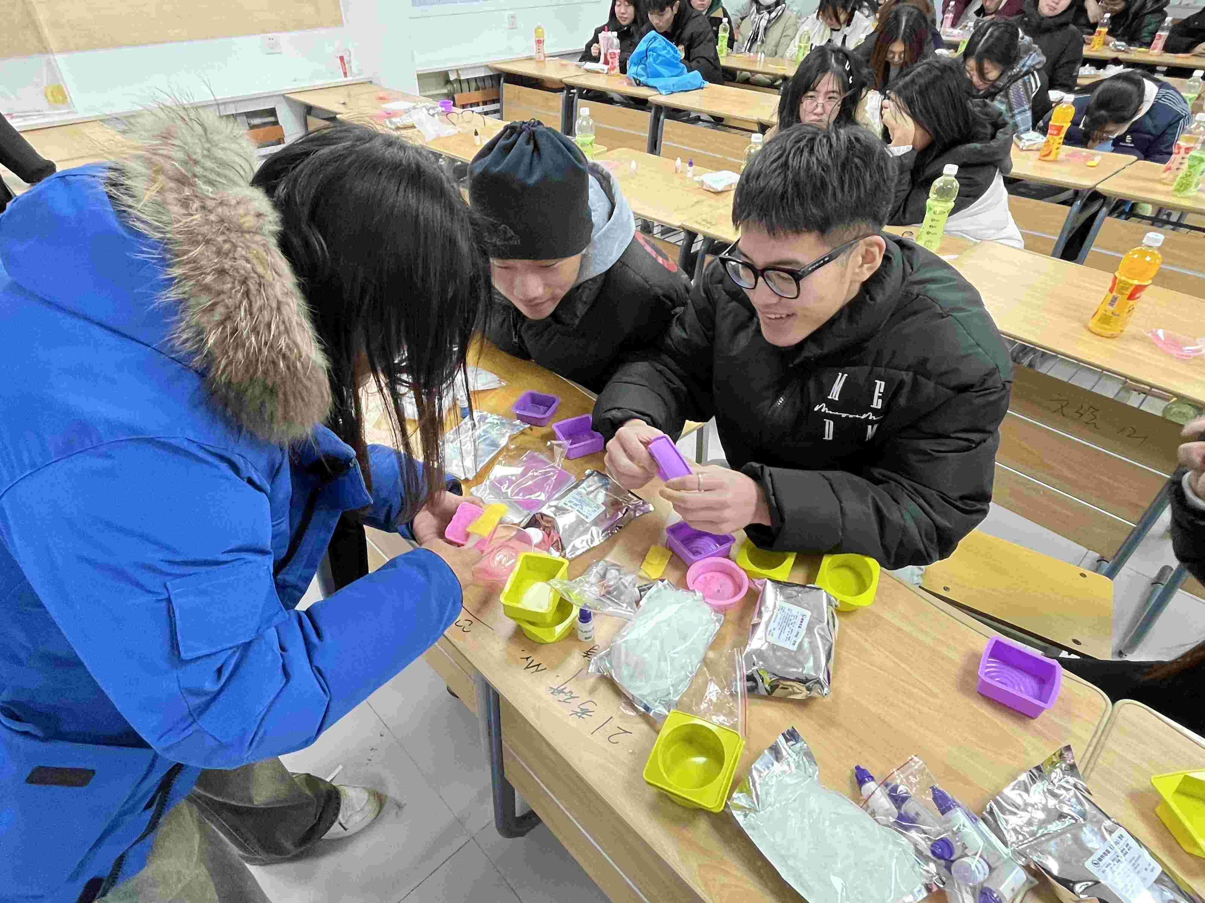 为加强学生个人健康卫生教育促进学生形成良好的生活习惯,同时丰富学生的生活,2023年12月19日下午两点化学与化工系“化学探索”社团在星耀社区开展手工肥皂DIY活动。