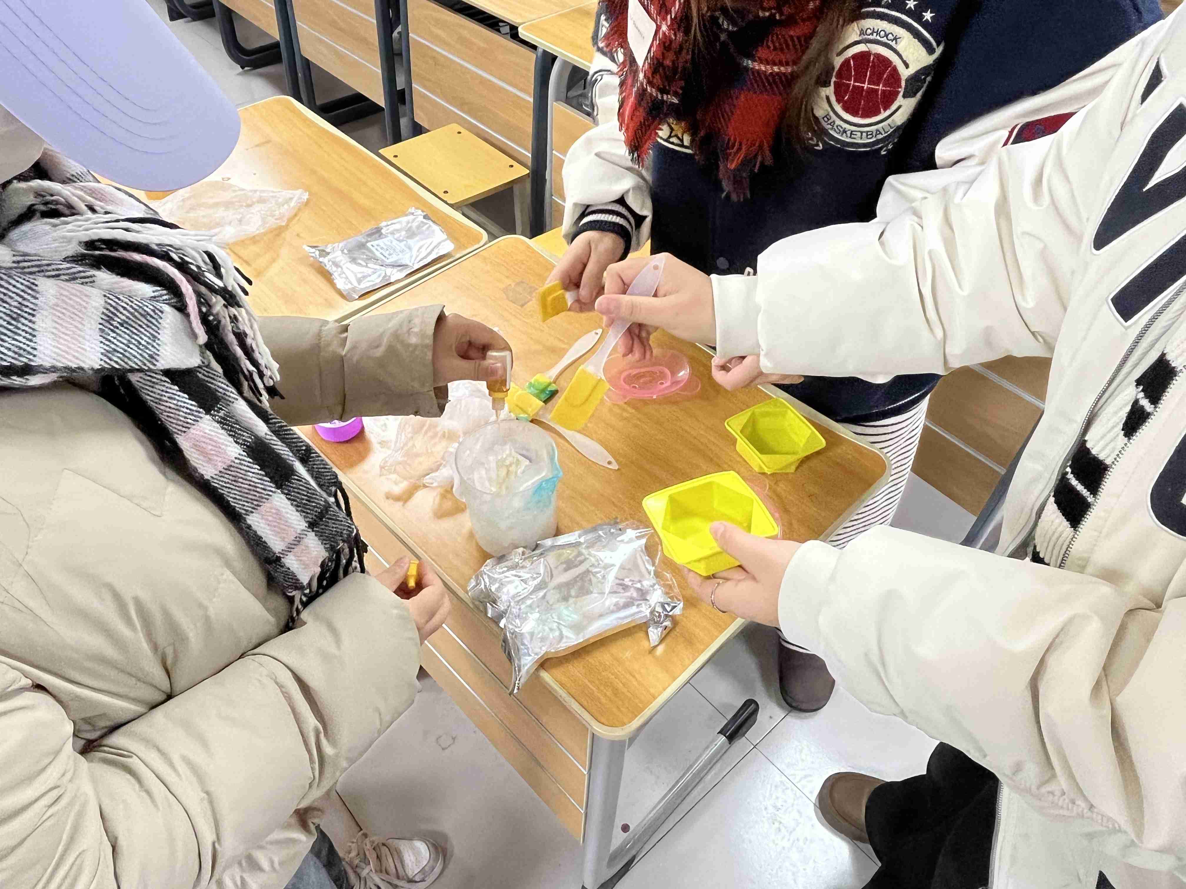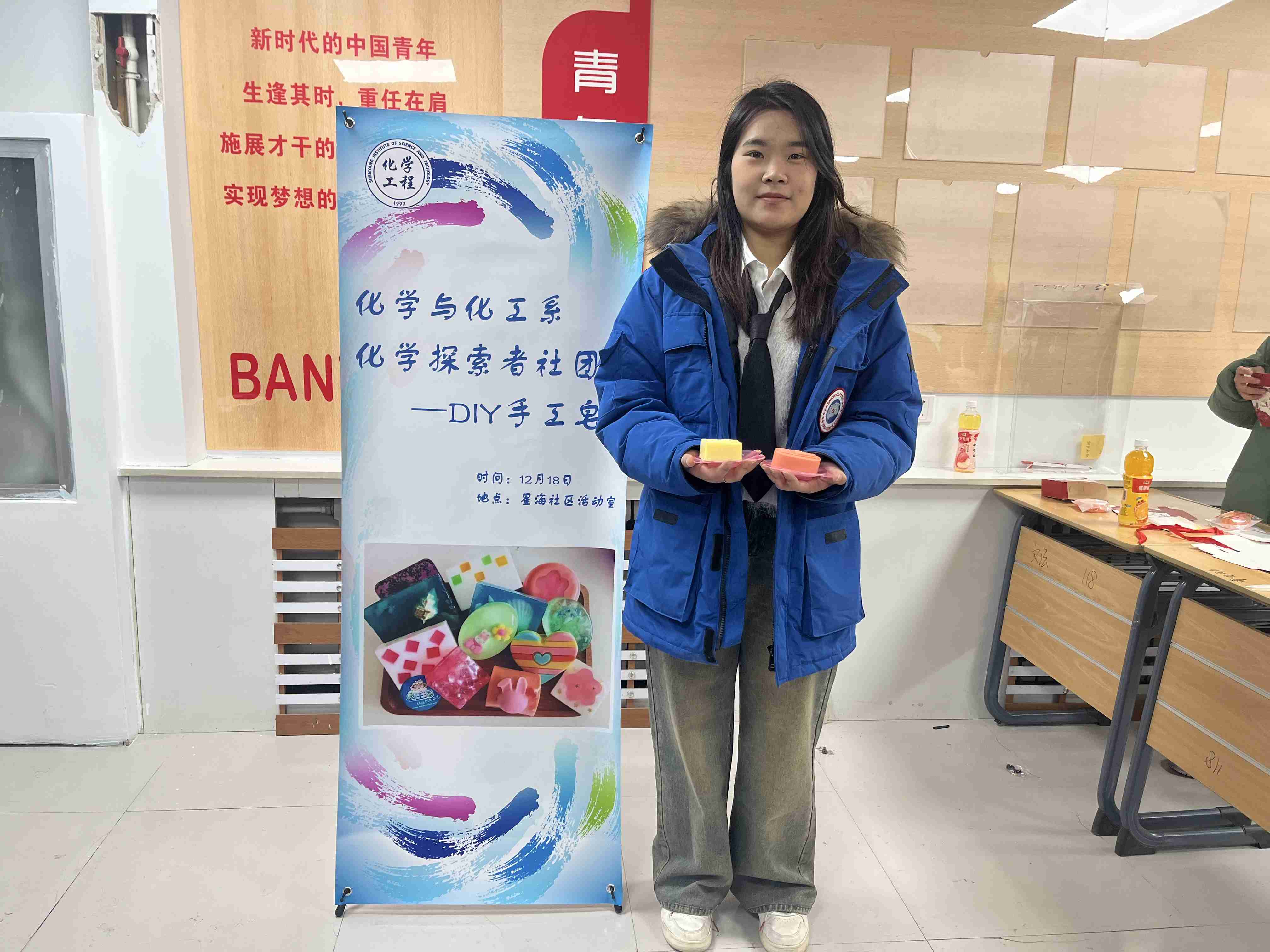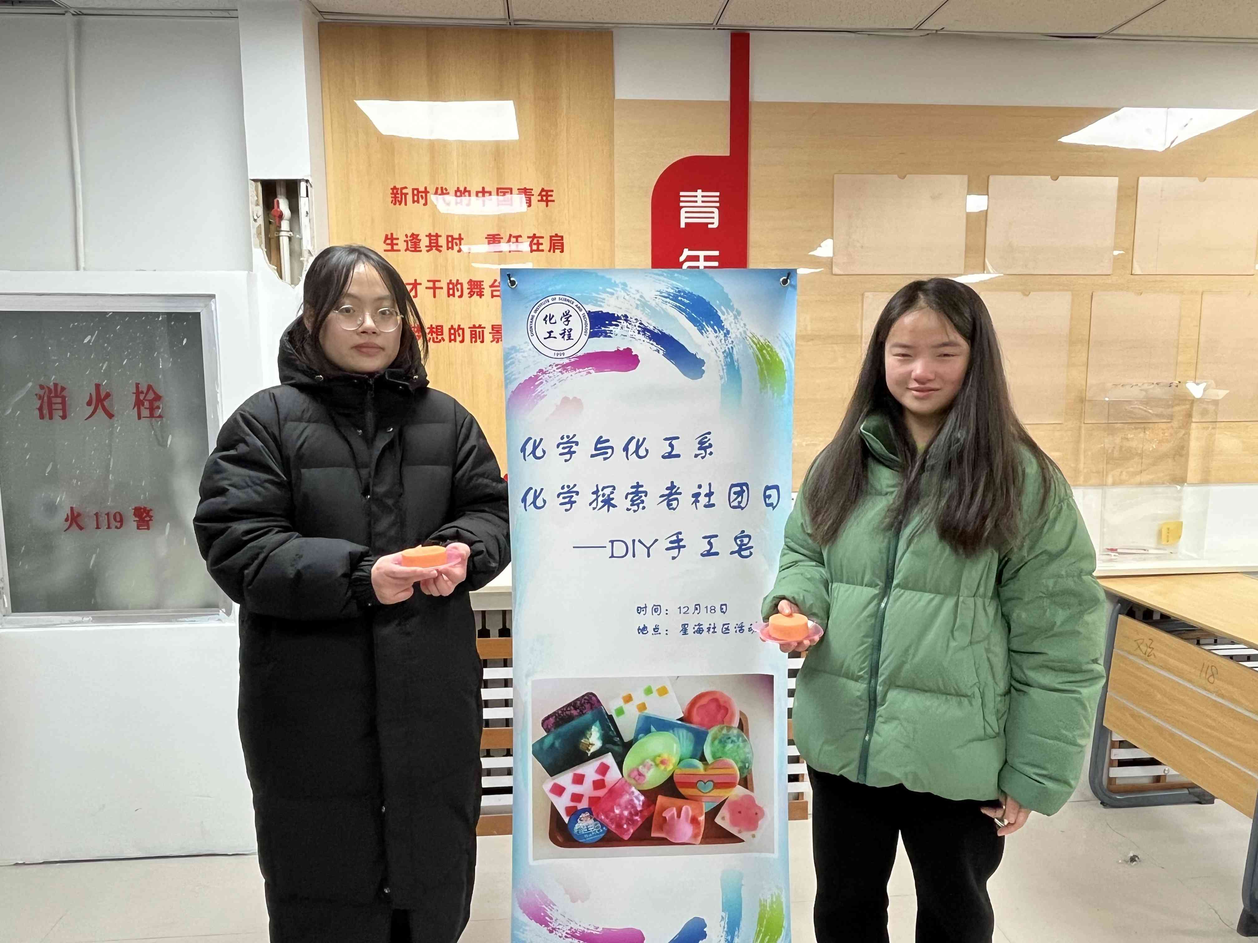 为加强学生个人健康卫生教育促进学生形成良好的生活习惯,同时丰富学生的生活,2023年12月19日下午两点化学与化工系“化学探索”社团在星耀社区开展手工肥皂DIY活动。